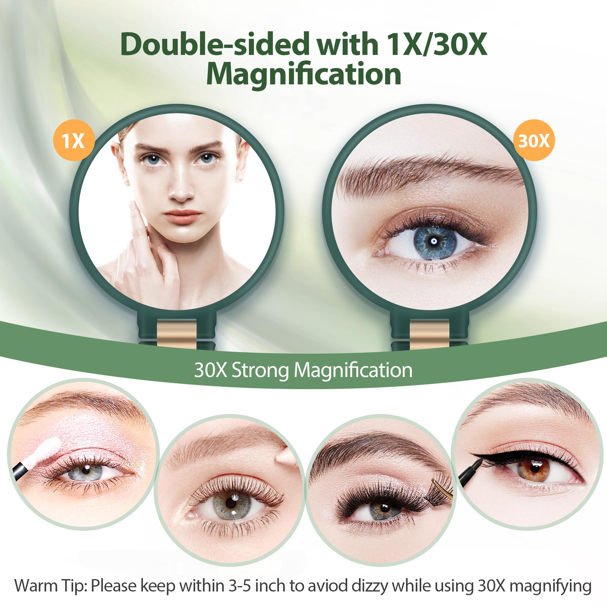 MIYADIVA 30X Handspiegel – Doppelseitig, Verstellbar, Tragbar (Smaragdgrün)