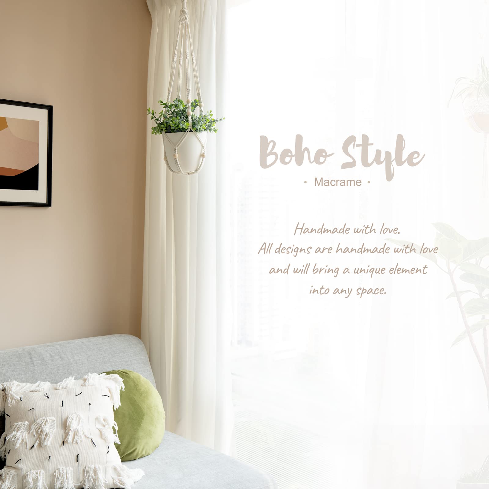 Mkouo 3er Set Makramee Blumenampel Pflanzenhänger Innen Pflanzkorb Hängender Blumentopfhalter Baumwollseil mit Perlen ohne Quasten, 58cm/73cm/89cm
