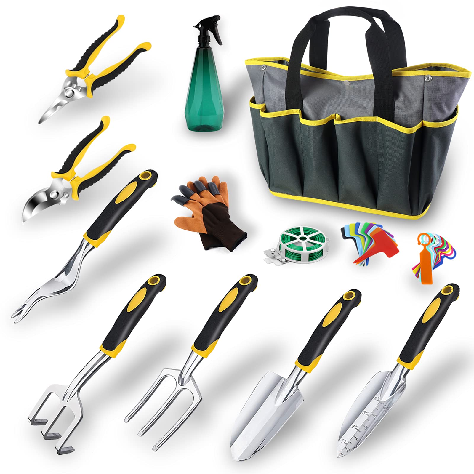MKYRLX Gartenwerkzeug Set 32-teilig, ergonomische Gummigriffe mit Mehreren Köpfen, strapazierfähige Aufbewahrungstasche, Gartengeräte als Geschenk für Damen und Herren