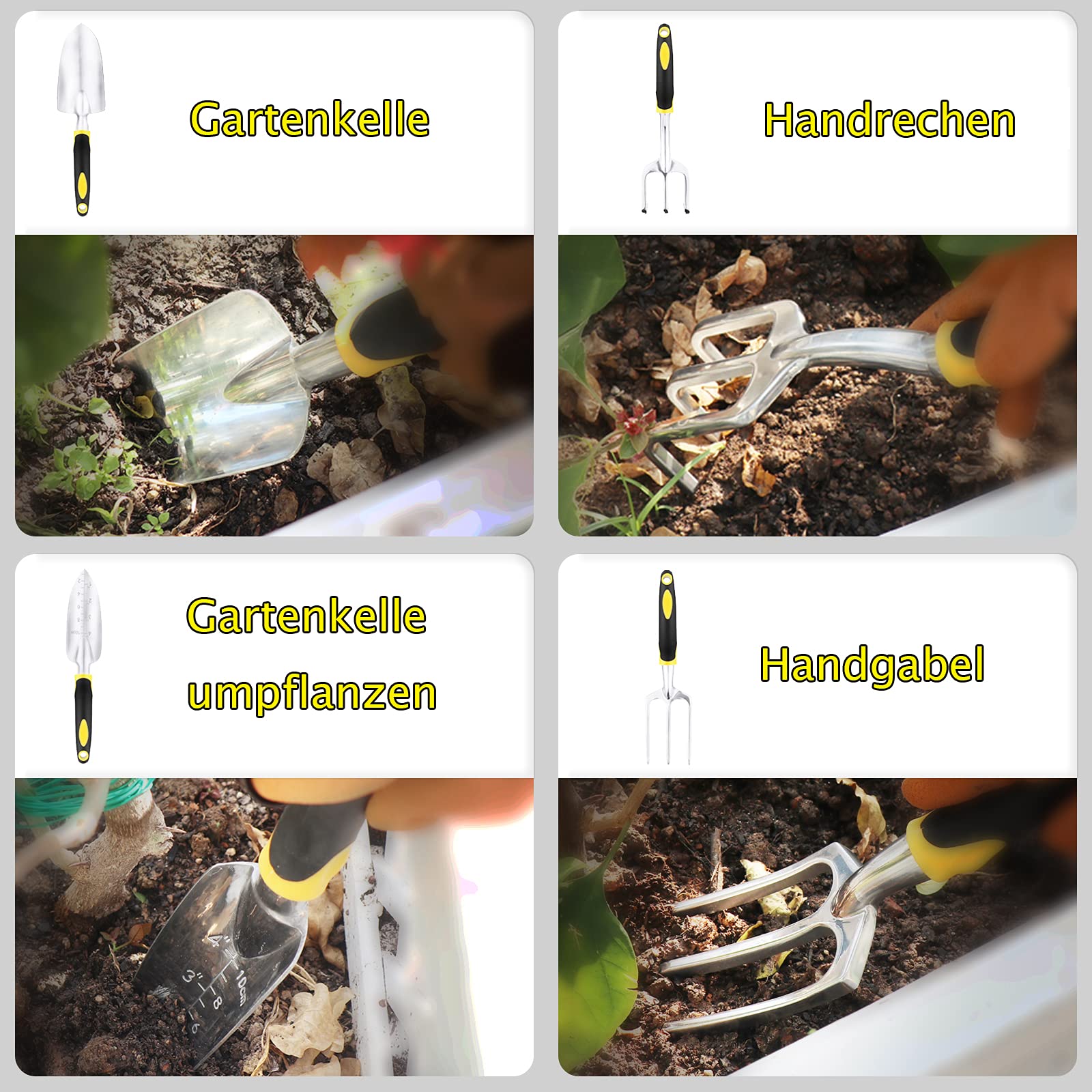 Good helper for gardeningIt is equipped with a variety of tools. Multifunctional tools meet all your outdoor garden needs. Enjoy your gardening with this excellent tool set.Suitable for indoor/outdoor use, very suitable for outdoor gardens, flower beds, vegetable cultivation, potted plants and indoor plants etc.The tool is made of high quality wood and stainless steel. The ergonomic soft grip handle reduces hand and arm fatigue while working.