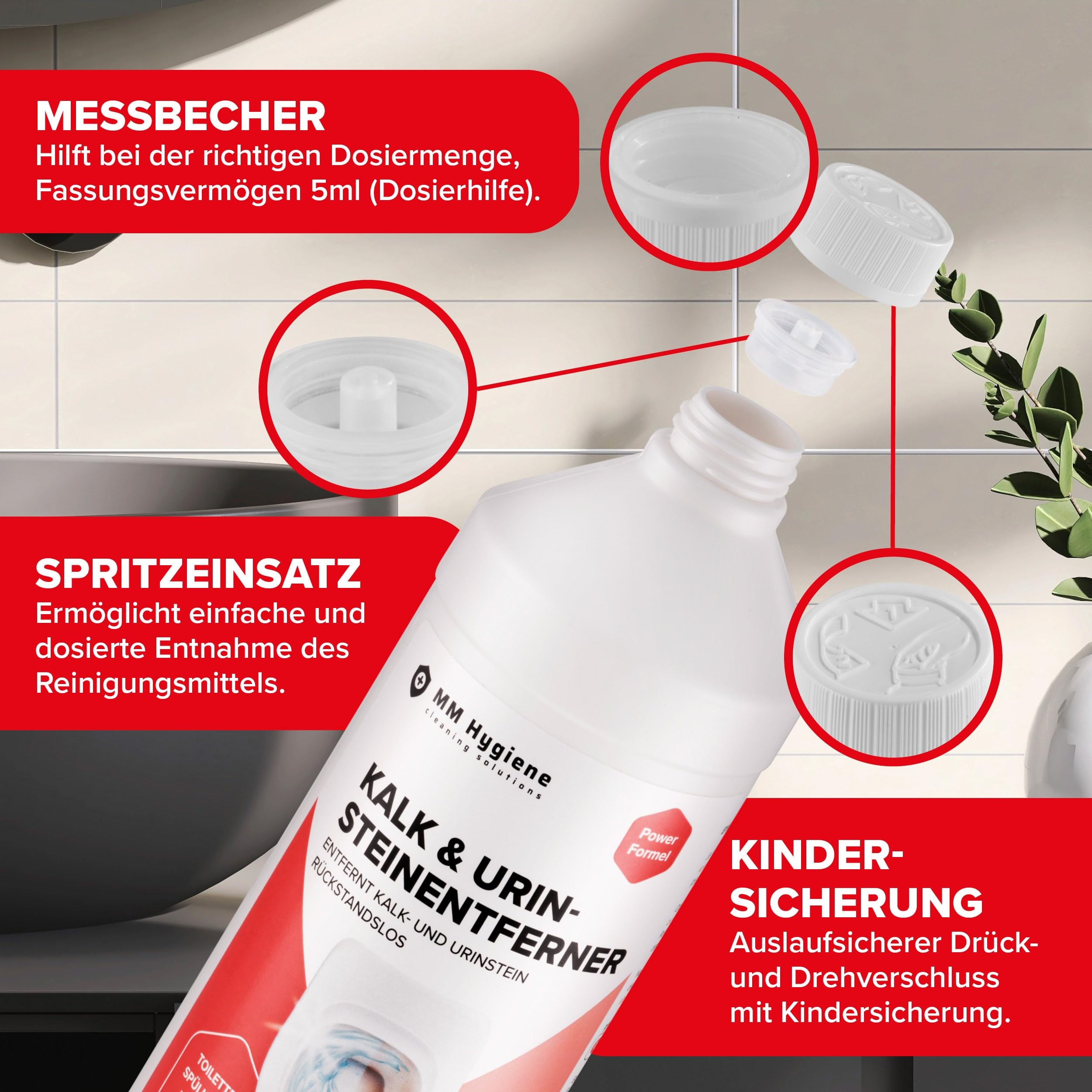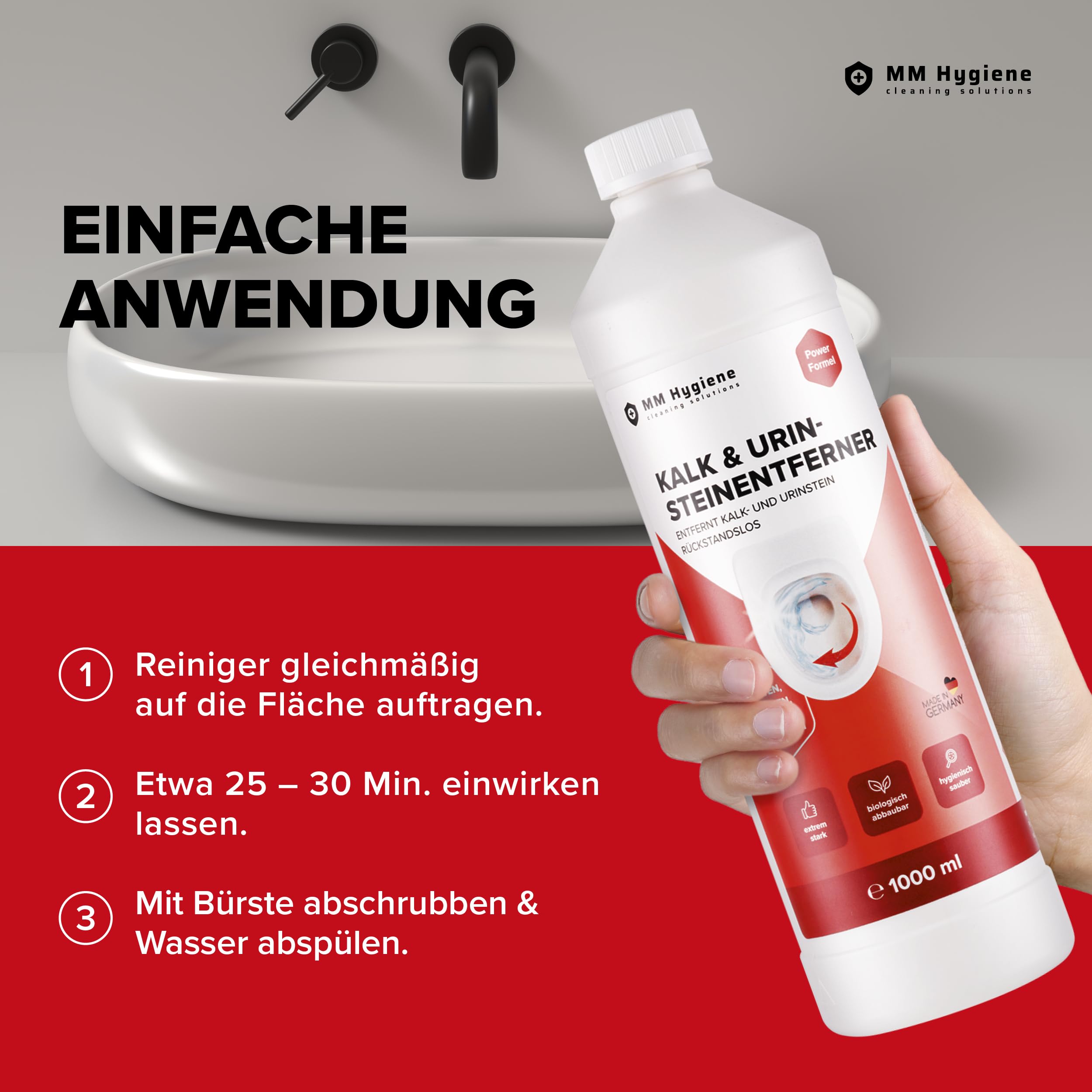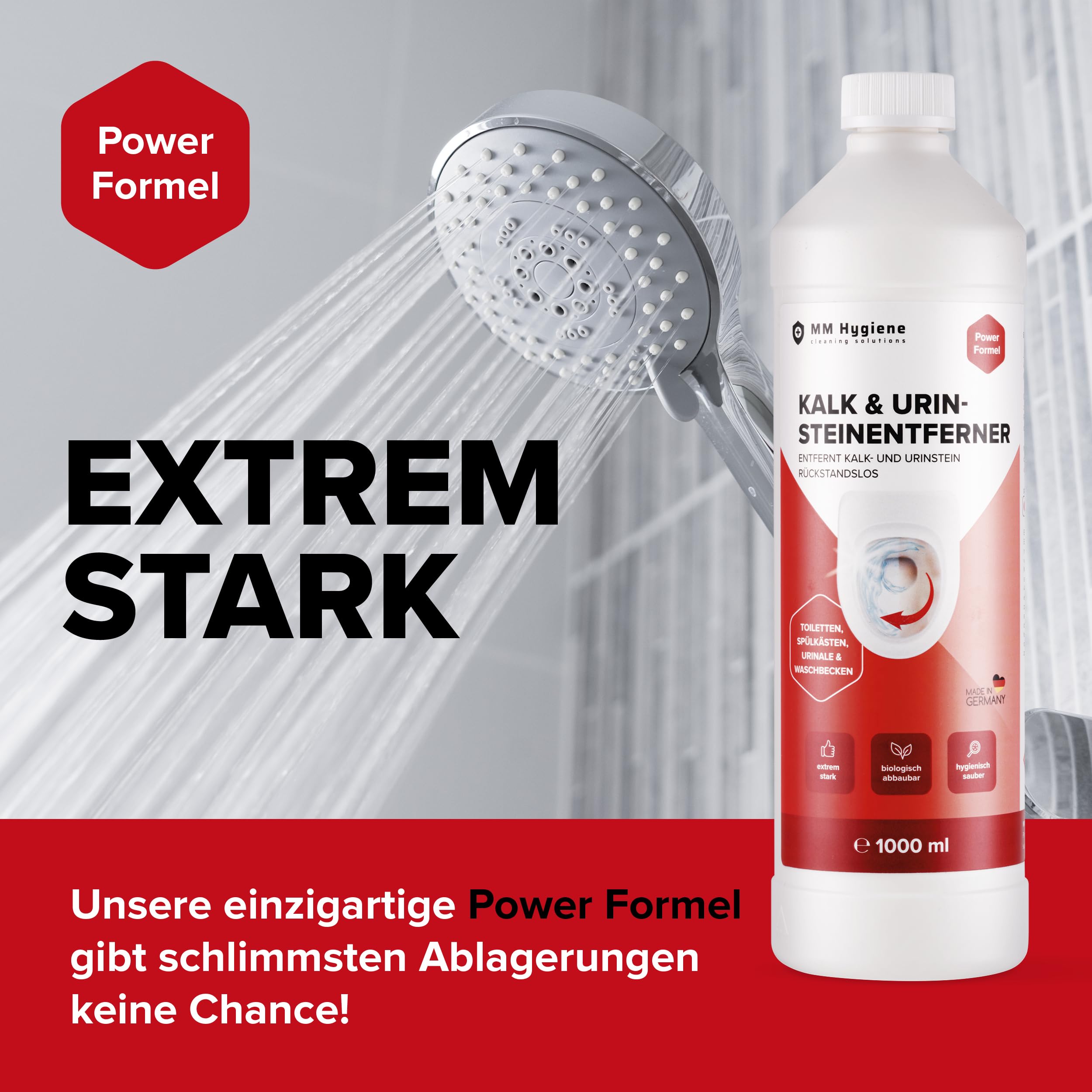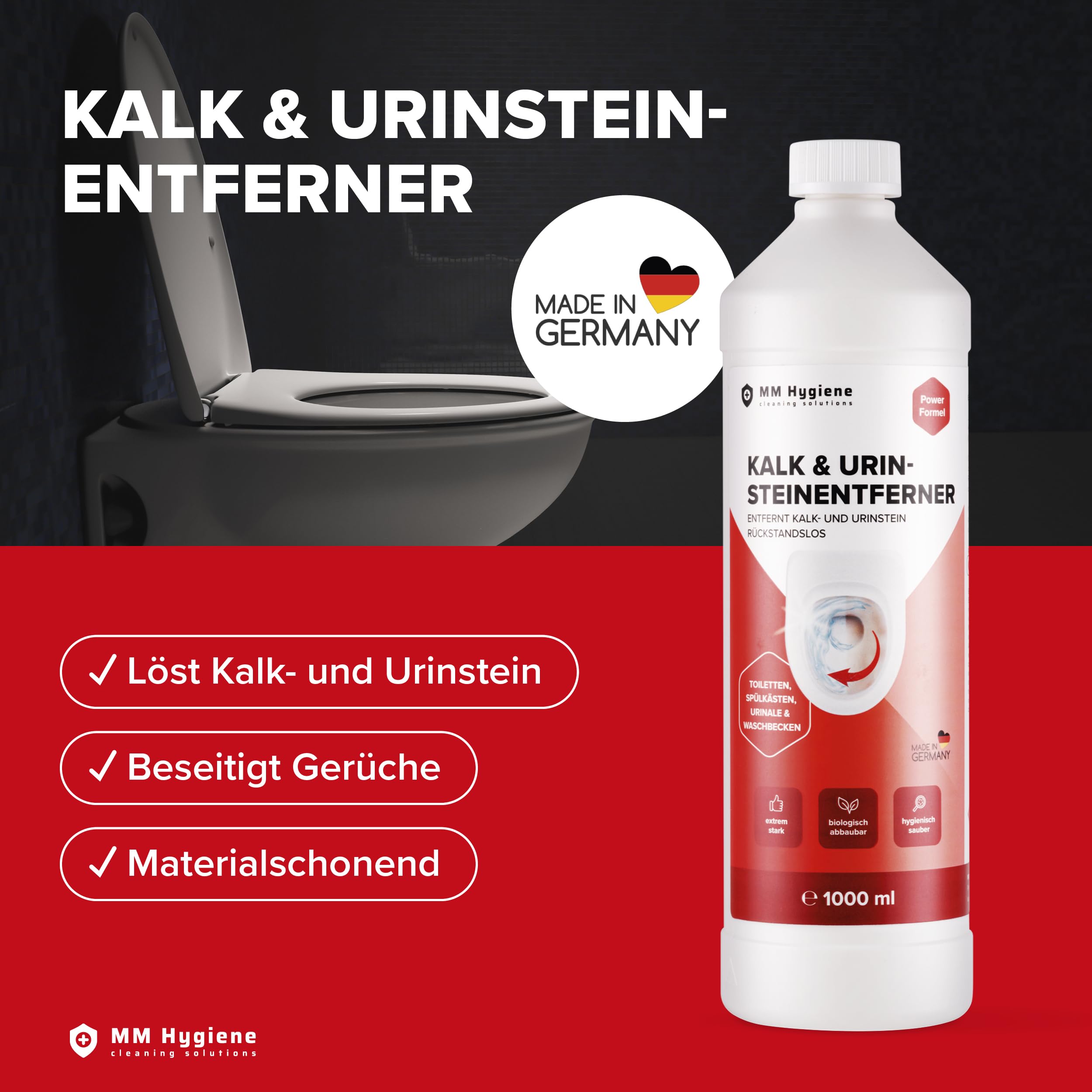 MM HYGIENE® Urinsteinentferner EXTRA STARK 1000ml - stärkster WC und Kalkreiniger extra stark - entfernt hartnäckigste Ablagerungen aus Kalkstein, Urinstein und Braunstein - Made in Germany