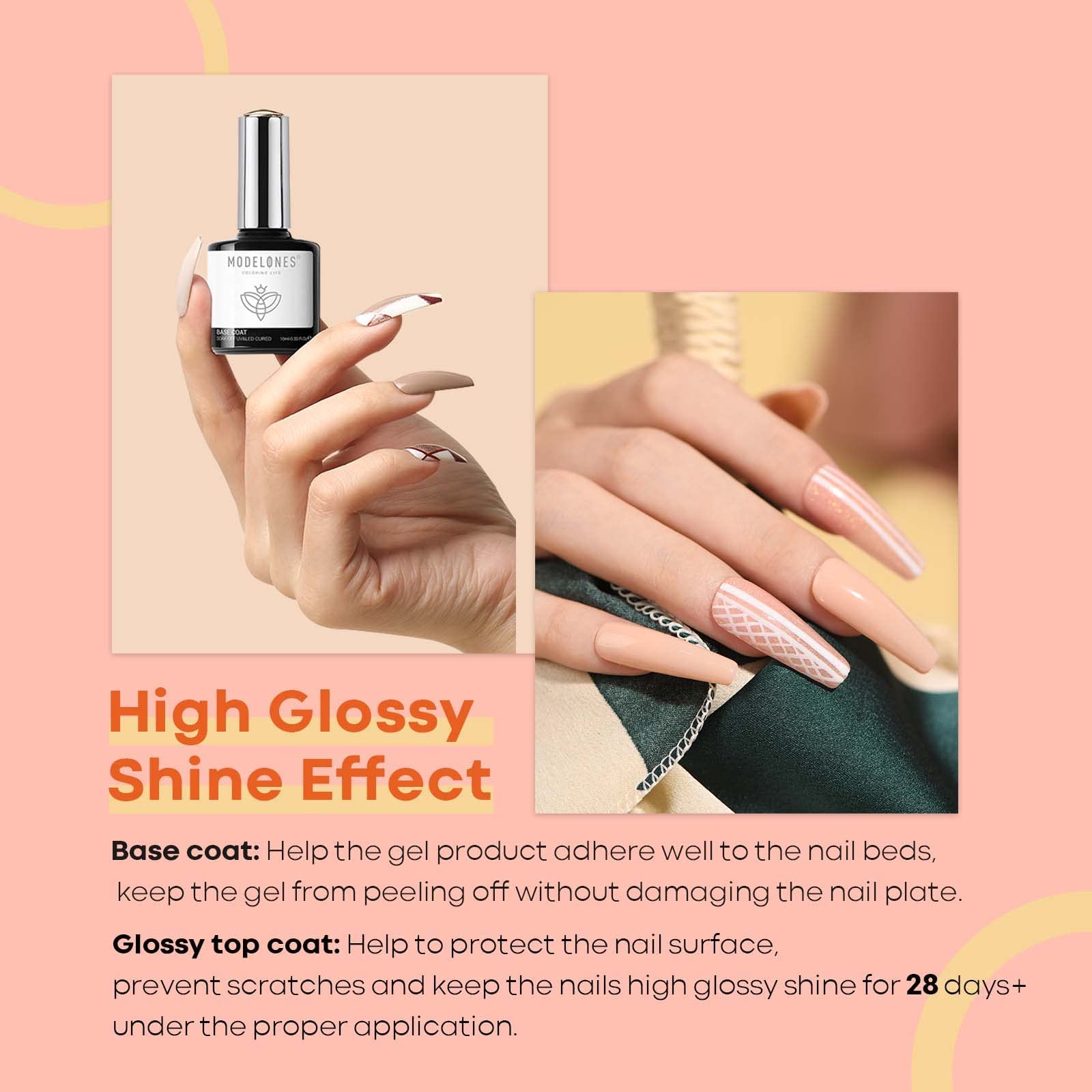 Modelones Base Coat Top Coat Nail Primer Set, UV LED Gel Unterlack & Ueberlack, 3er Set, 3 x 10 ml