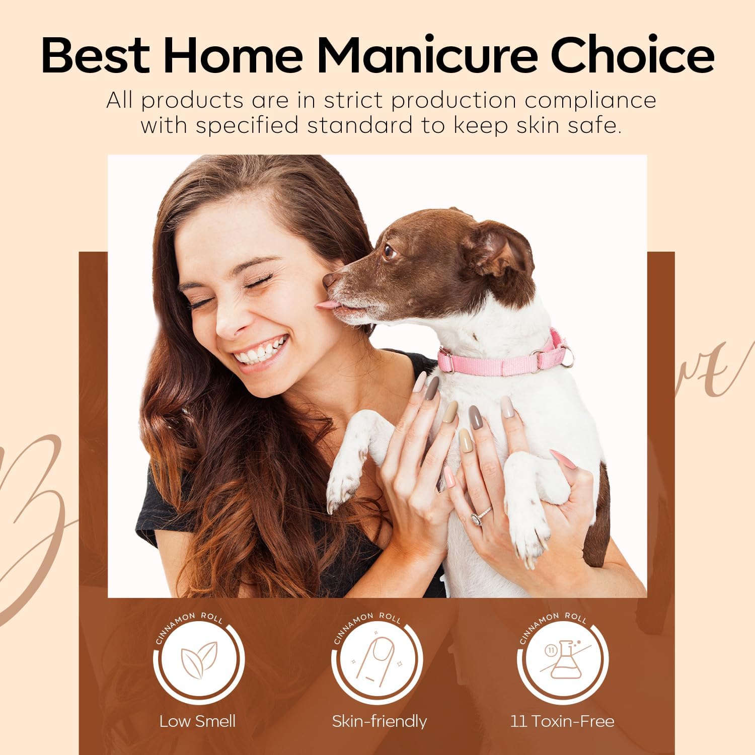 Das Set enthaelt sechs Soak-Off Gellacke in warmen Braun-, Orange-, Rot- und Zimtnuancen mit schokoladigen und glitzernden Effekten. Die Farben lassen sich einzeln oder in mehreren Schichten auftragen und sind farblich aufeinander abgestimmt, um vielseitige Nail Art Designs zu ermoeglichen. Der Look eignet sich besonders fuer saisonale Styles im Herbst und Winter.