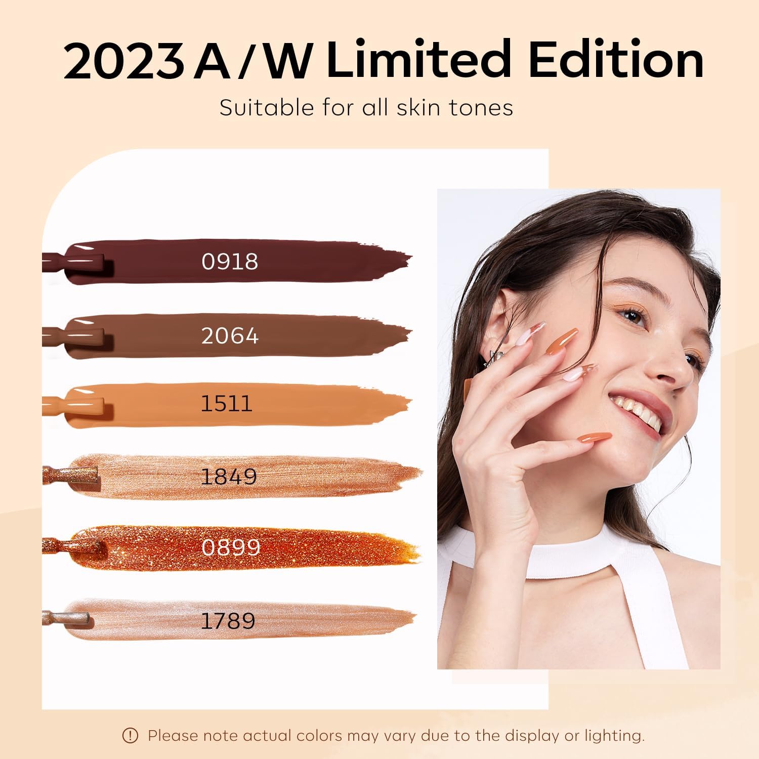 Modelones UV Gel Nagellack Set Herbst Winter, Braun Orange Schokoliert Glitzer, 6 Farben, Soak-Off