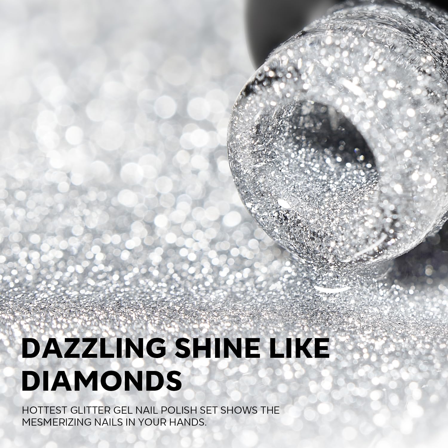 modelones UV Nagellack Glitzer, 6 Farben Rosa Rot Silber Nagelgel Set, Gelnägel Reflective Glitter Polish Kit, Gel Lack Anfänger DIY Nail Art Maniküre Salon