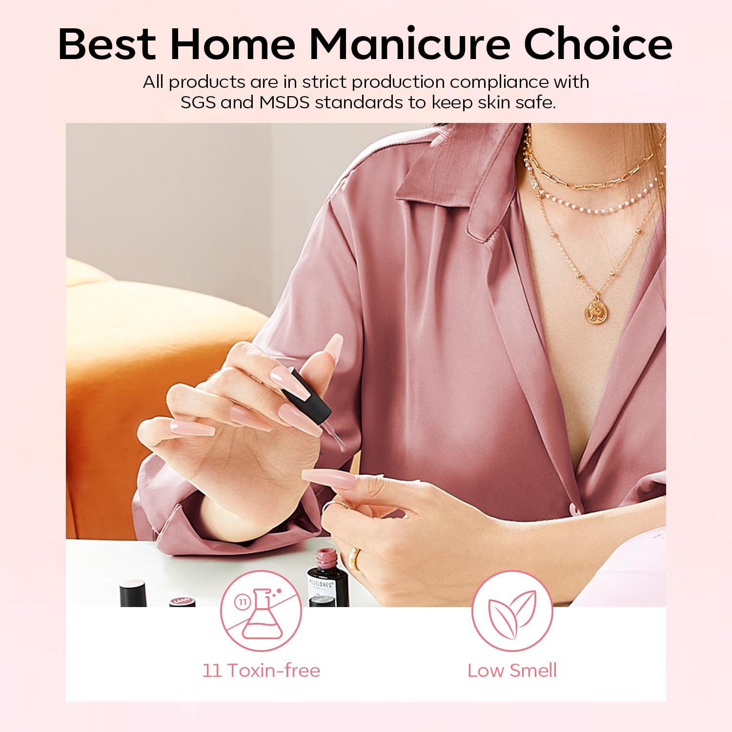 Modelones UV Gel Nagellack Set mit 6 Farben Pastell Nude und Rosa Glitzer