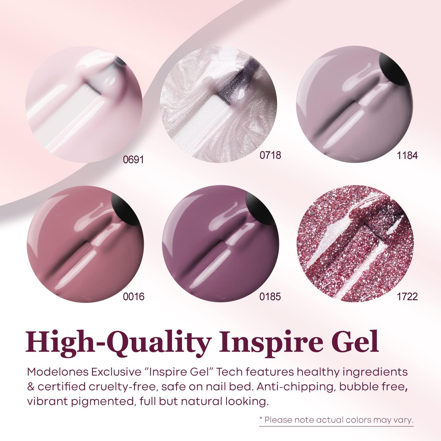 Die Farbpalette ist so zusammengestellt, dass die einzelnen Farben harmonisch miteinander kombiniert werden koennen. Die Gel-Lacke lassen sich einzeln oder in mehreren Schichten auftragen und sind fuer die Haertung unter UV- oder LED-Lampen vorgesehen.