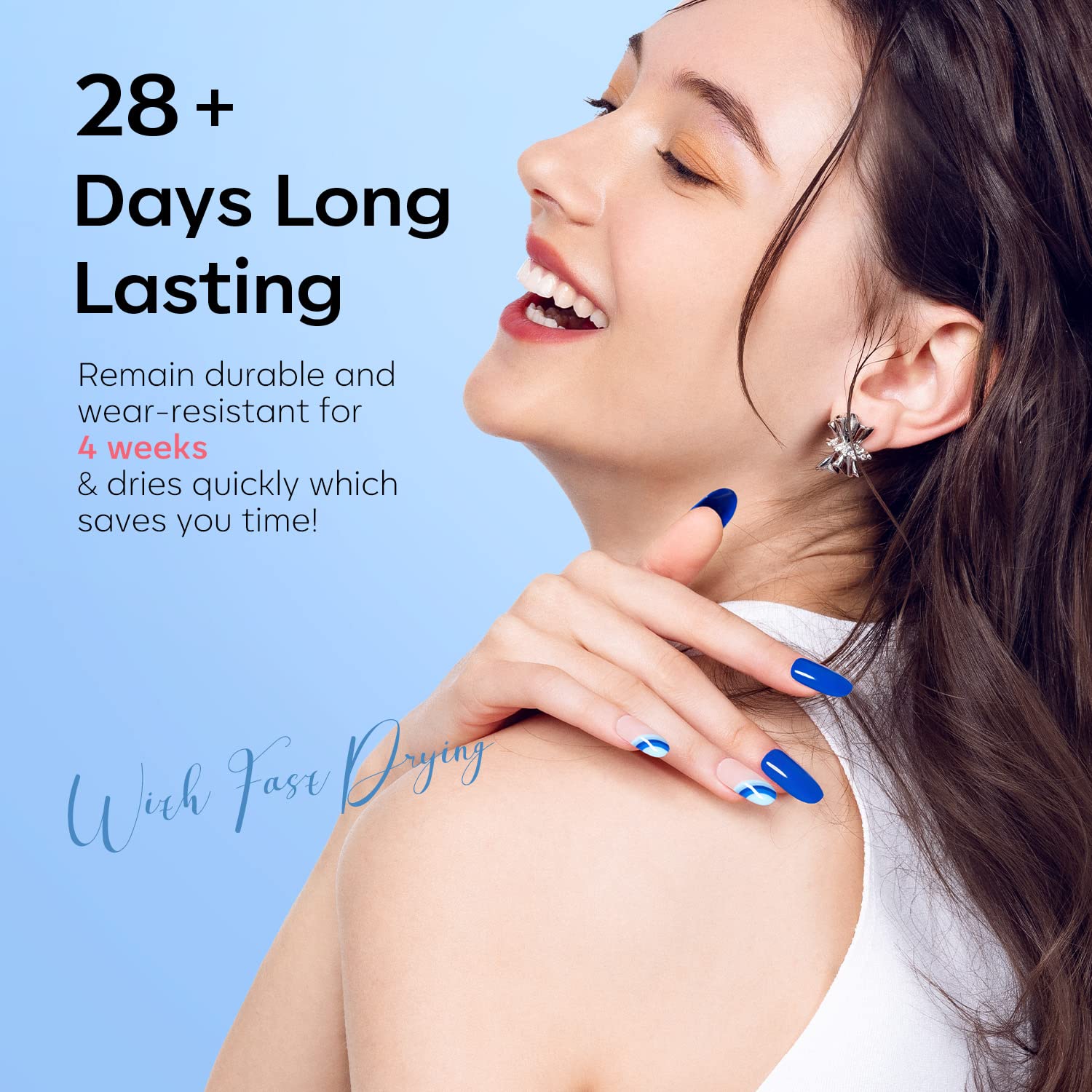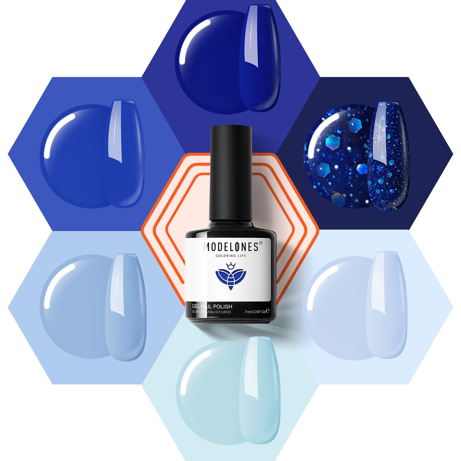 Das Modelones UV Gel Nagellack Set mit sechs Blautoenen und Glitzereffekten eignet sich fuer kreative Nail Art Designs und saisonale Manikueren im Fruehling und Sommer. Es richtet sich an Anwenderinnen und Anwender, die intensive Farben, Glanz und eine langanhaltende Gel-Manikuere bevorzugen.