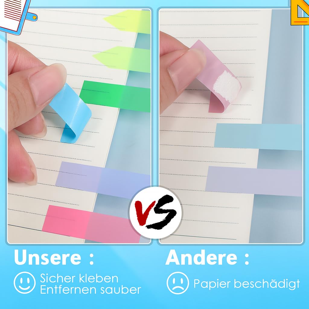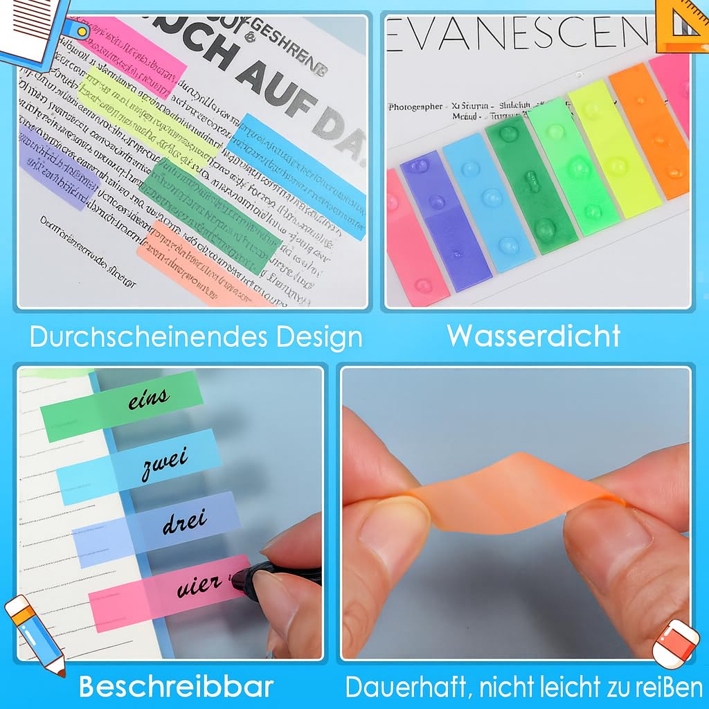 • 【Durchscheinend & beschreibbar】Die transparenten Tabs verdecken keine Textstellen und eignen sich perfekt zum Hervorheben wichtiger Informationen. Beschreibbar mit Bleistift, Kugelschreiber, Marker oder Gelstift – klar lesbar und praktisch.