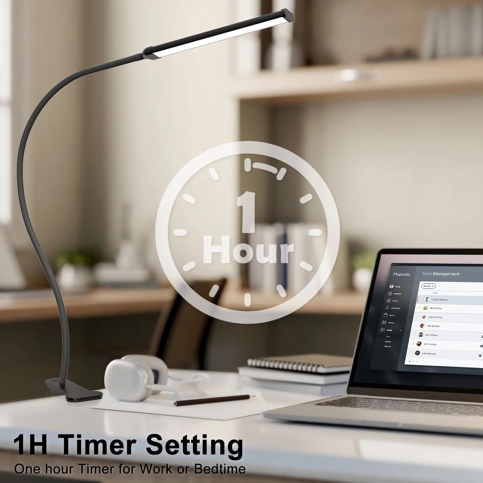 Mojimdo Schreibtischlampe 77 LED mit Fernbedienung [Beeindruckende Lichtleistung] 70CM Klemmlampe, 3 Farben & 10 Helligkeitsstufen, 360° Flexibel mit USB-Ladegerät