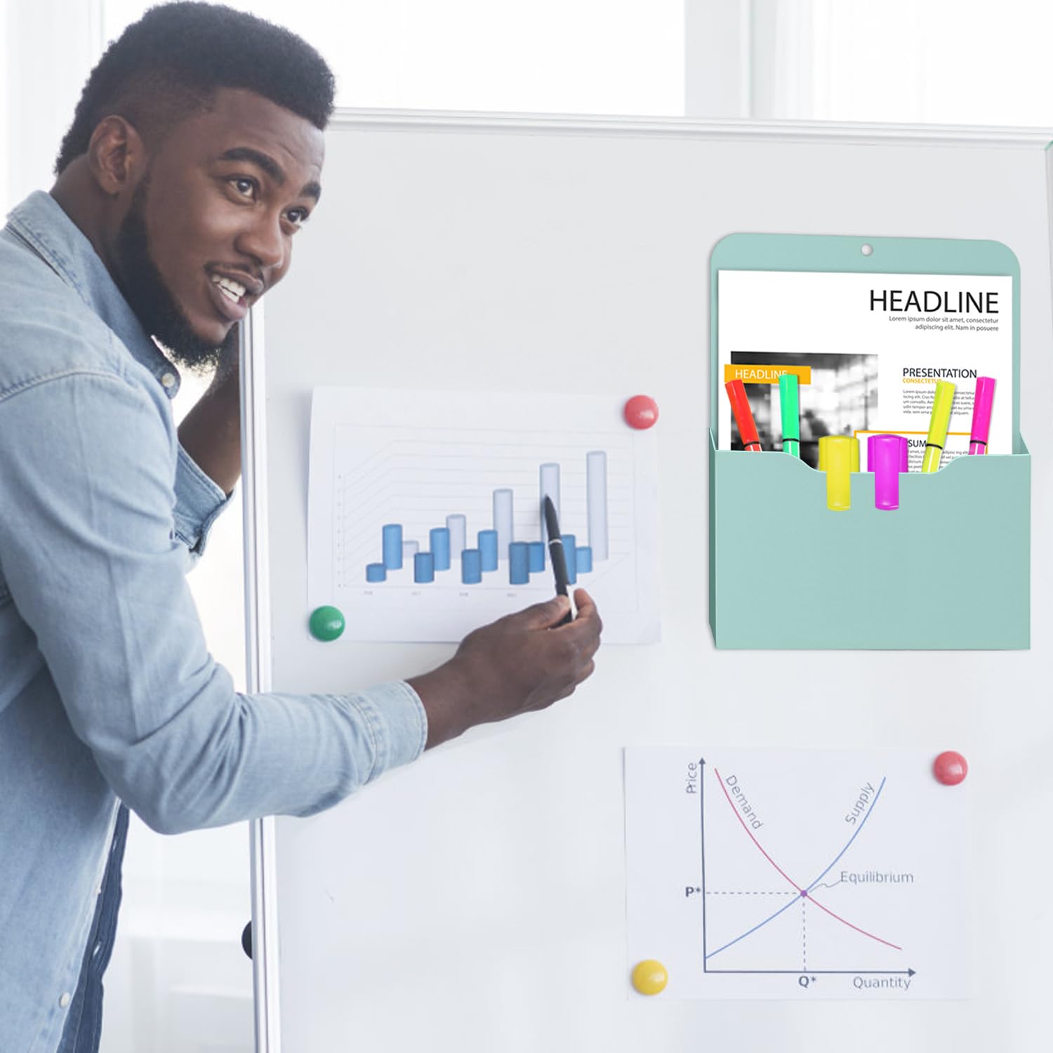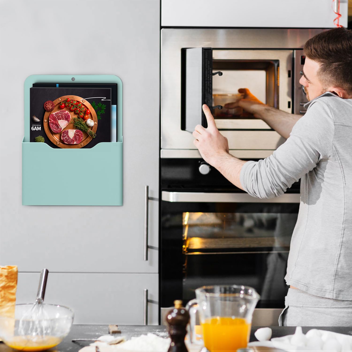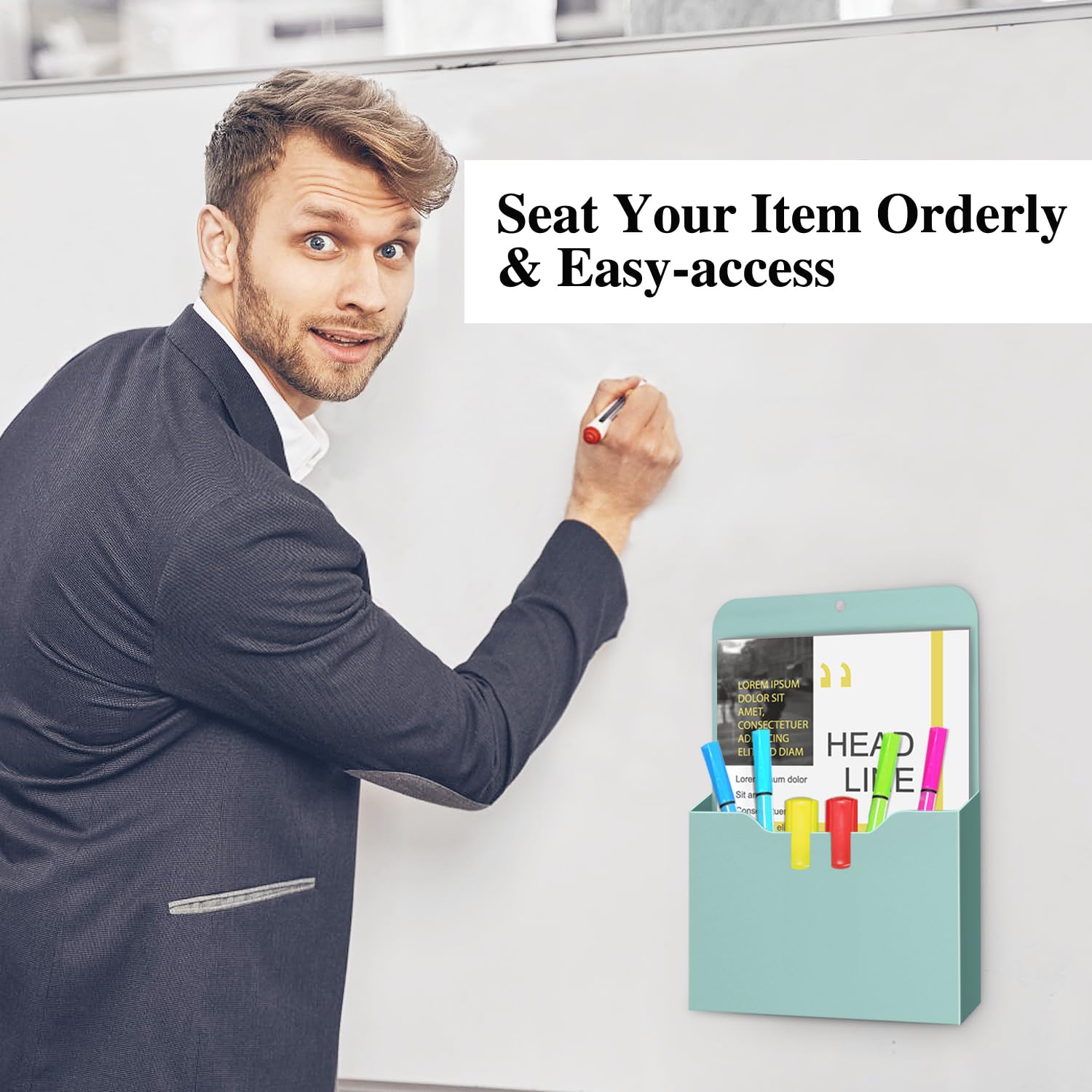 MoKo Magnetischer Stiftehalter, 2 Pack Magnetisch Zeitungshalter Wand, A4 Dokumentenhalter Bürobedarf Aufbewahrung, Notizbücher Organizer für Schule Büro Zuhause Kühlschrank, Grün