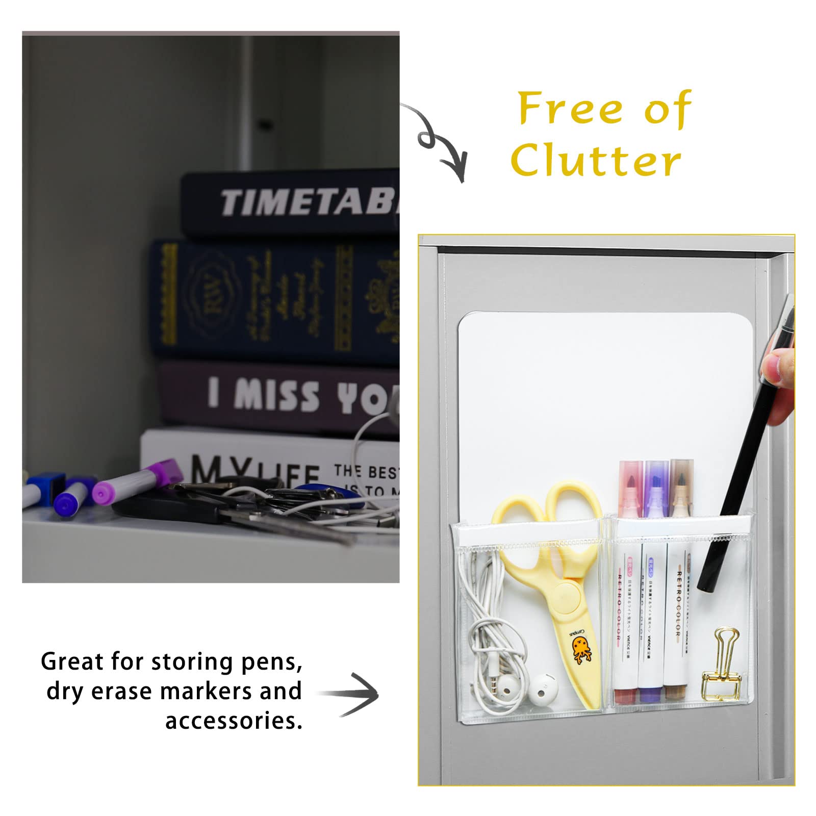 MoKo Magnetischer Stiftehalter, 2 Stück Marker Organizer Whiteboard Magnetische Stift Halterung mit 2 Fächern Schulbedarf für Schulleben Kühlschrank Spind und andere magnetische Oberflächen - Weiss