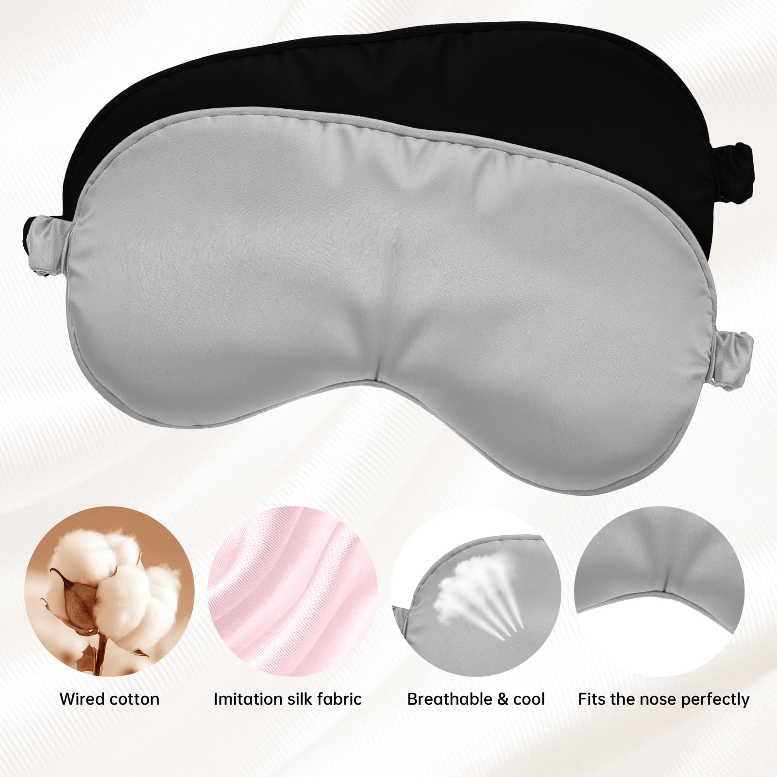 Molain 2 Stück Seidene Schlafmaske, Seide Augenmaske Weiche Augenbinde Schlafen Lichtblockierend Schlafmaske Herren Schlafmasken Seide für Pause, Reise oder Ruhige Einschlafen Damen (Schwarz + Grau)