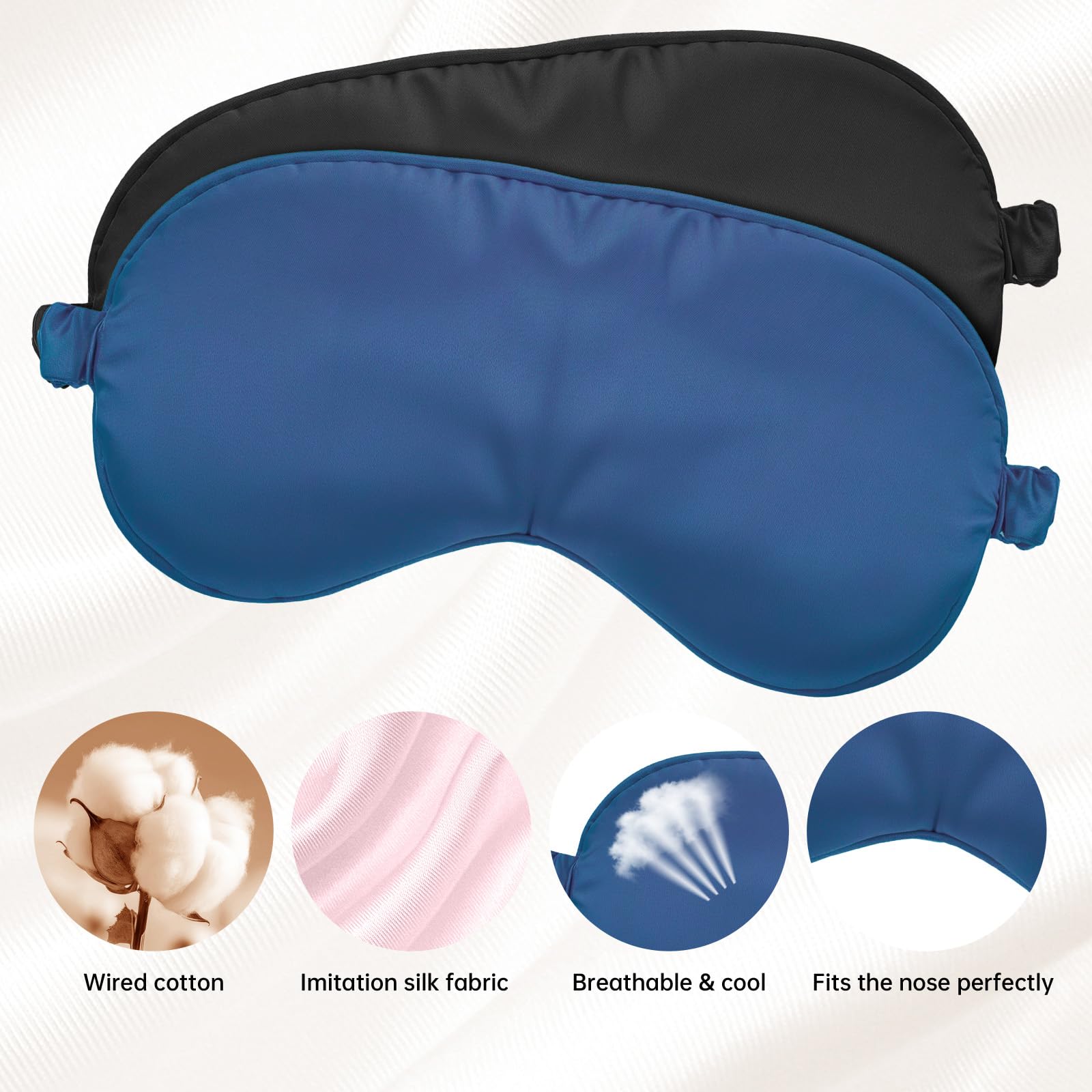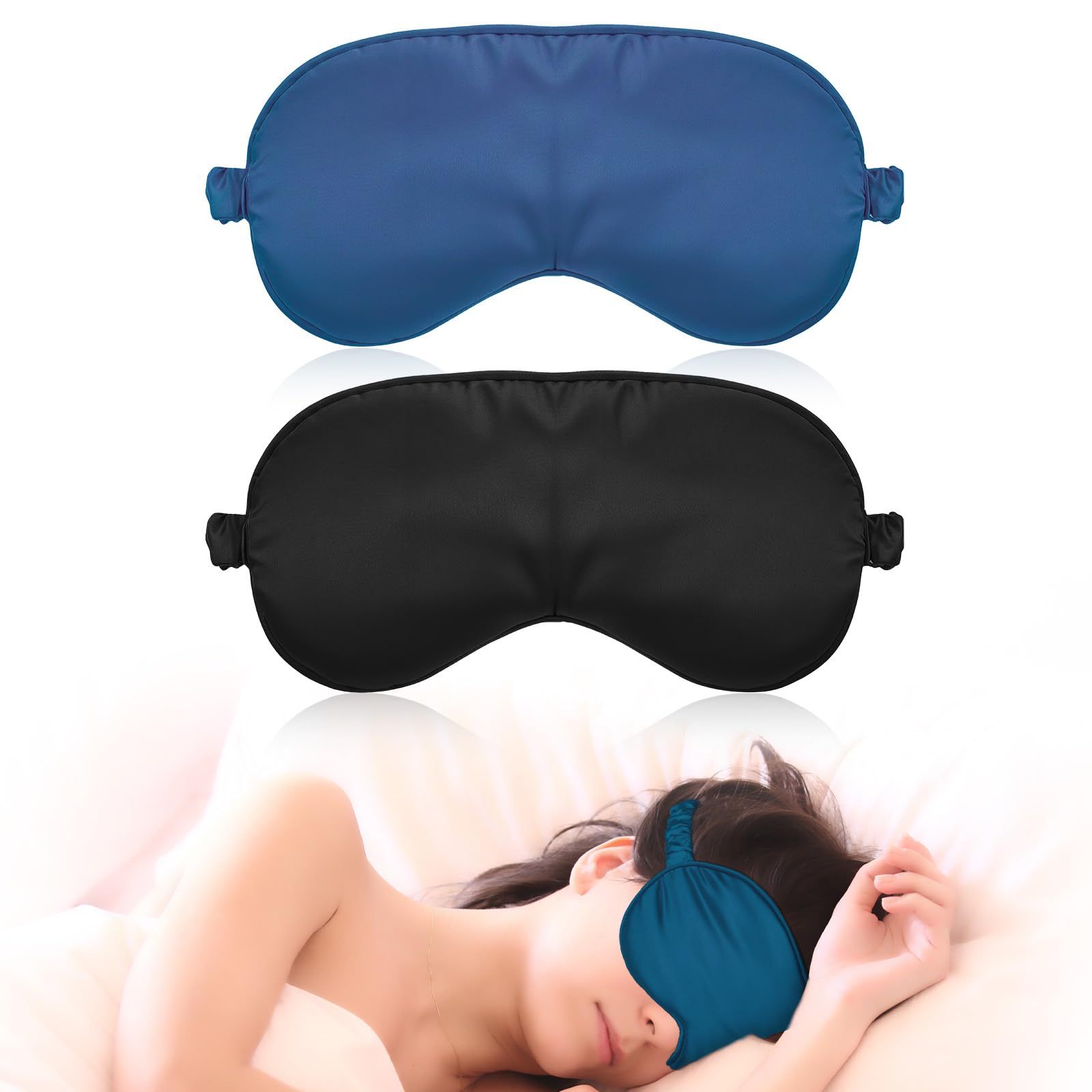 Molain 2 Stück Seidene Schlafmaske, Seide Augenmaske Weiche Augenbinde Schlafen Lichtblockierend Schlafmaske Herren Schlafmasken Seide für Pause, Reise oder Ruhige (Schwarz + Marineblau)