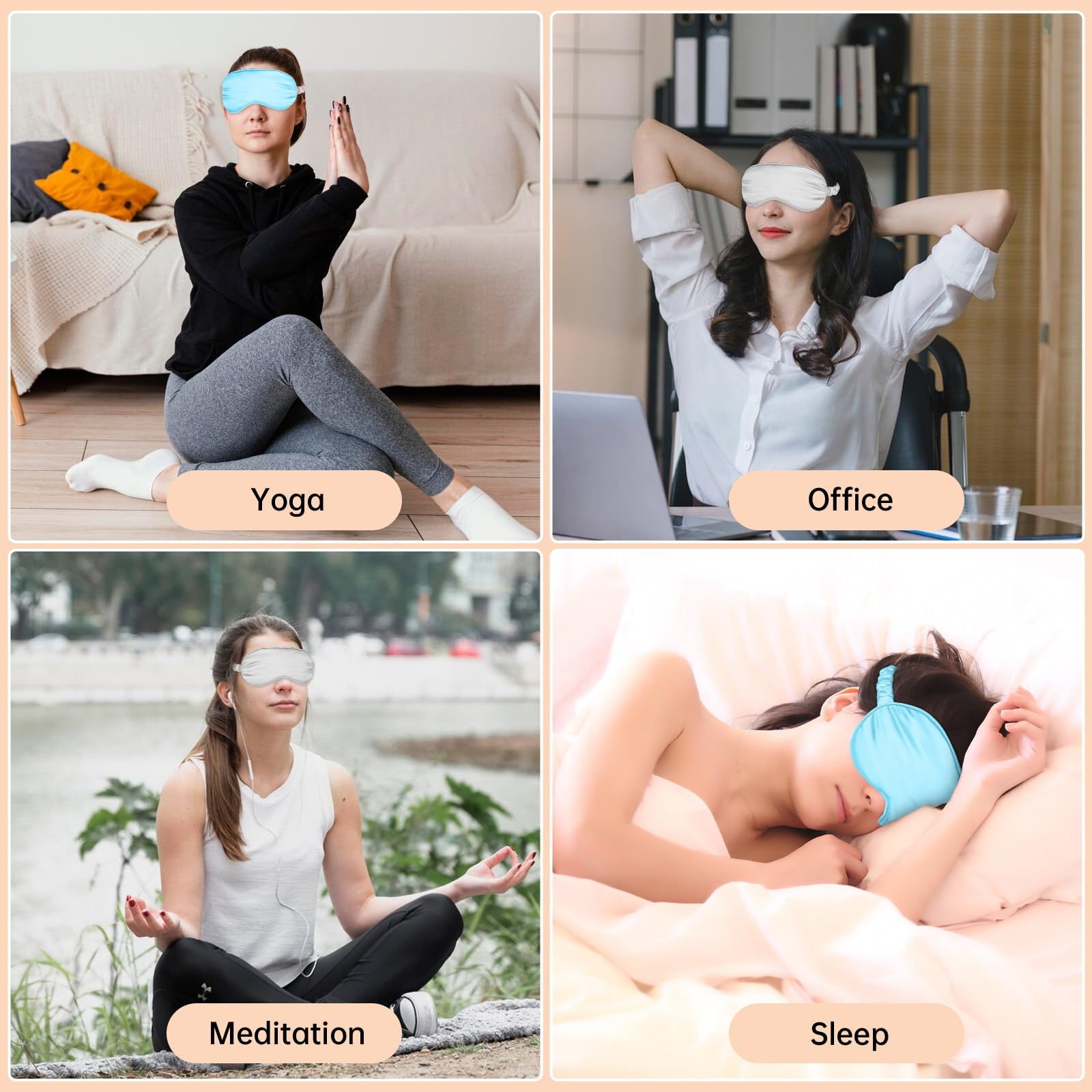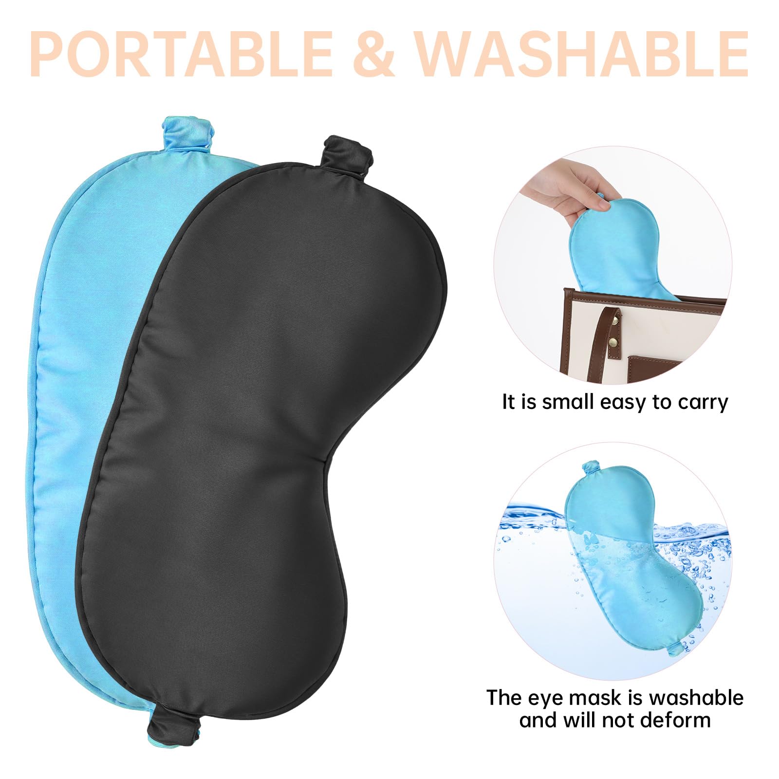 Molain 2 Stück Seidene Schlafmaske, Seide Augenmaske Weiche Augenbinde Schlafen Lichtblockierend Schlafmaske Herren Schlafmasken Seide für Pause, Reise oder Ruhige (Schwarz + Himmelblau)