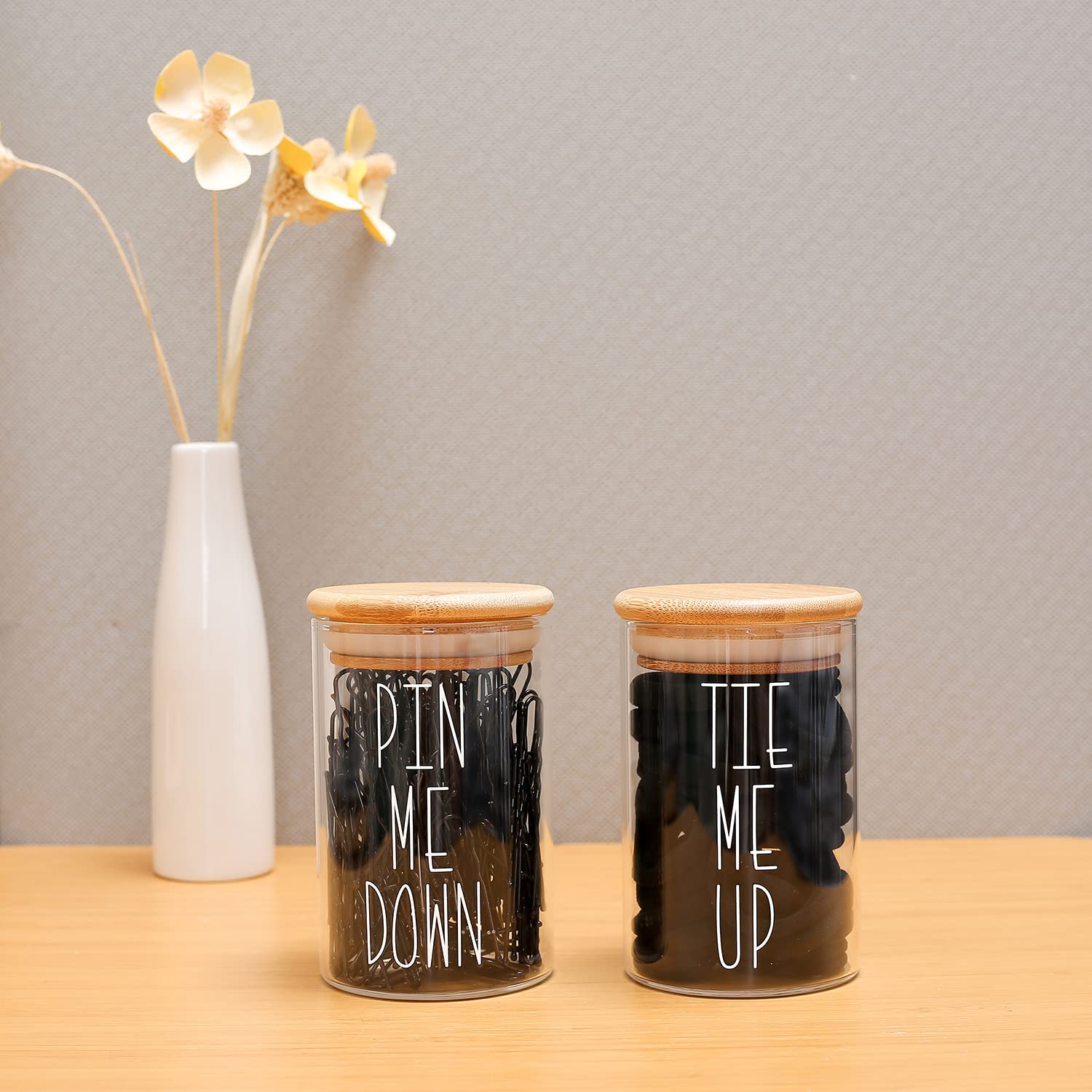 Momeemo Apothekergläser mit Deckel für Badezimmer-Aufbewahrungs-Organizer, Haargummi-Organizer und Haarnadel-Halter sind ideal für Bambus-Badezimmer-Accessoires, Badezimmer-Dekoration,