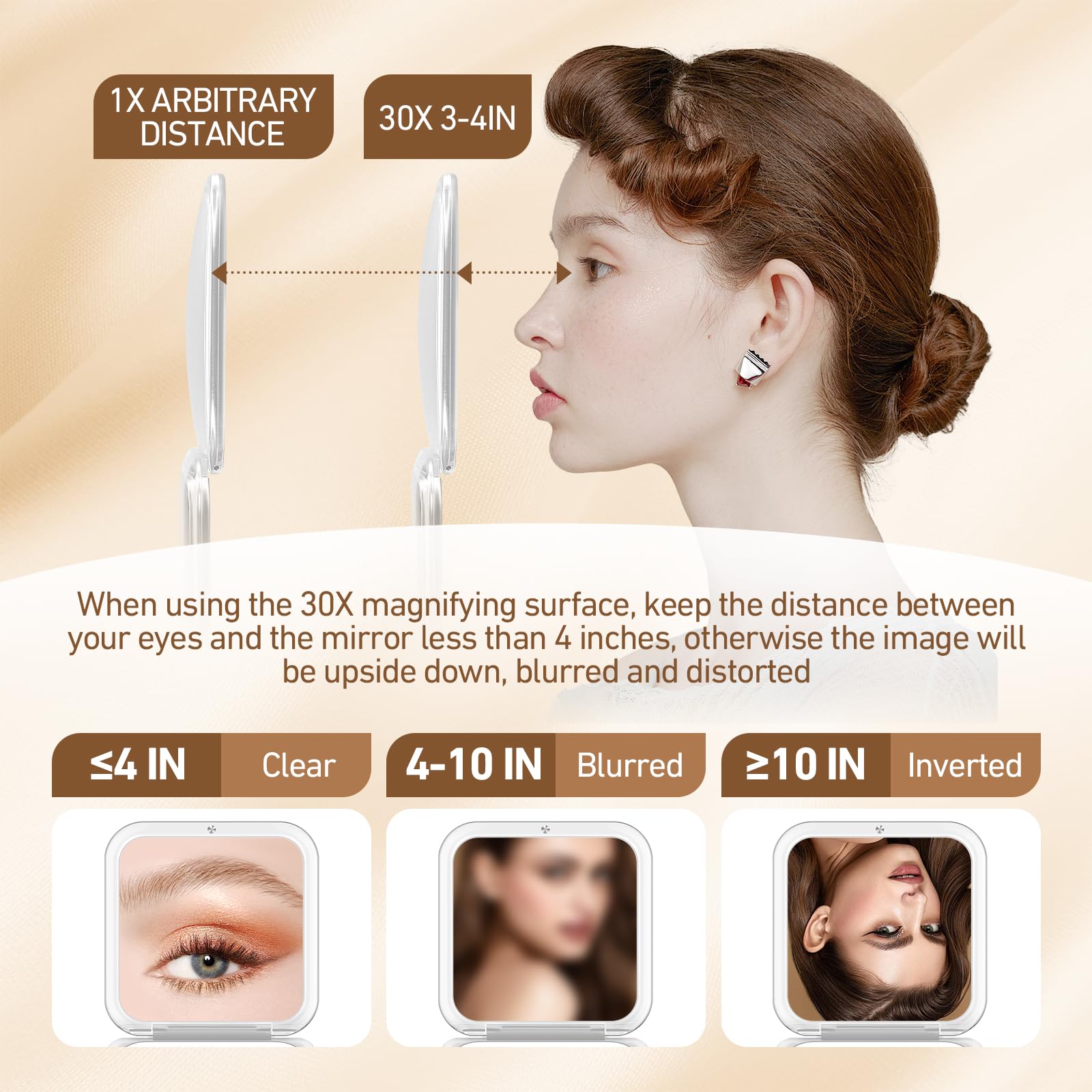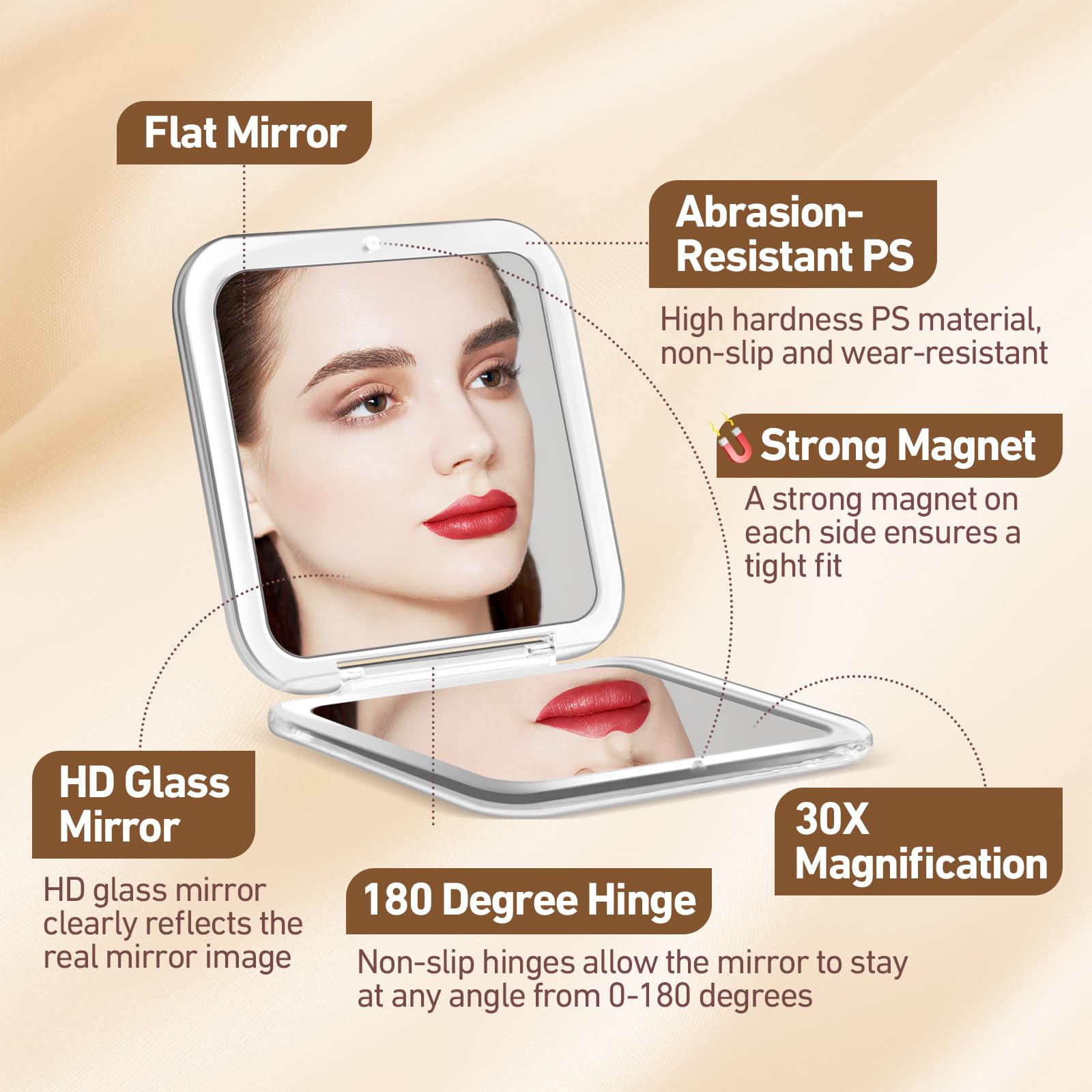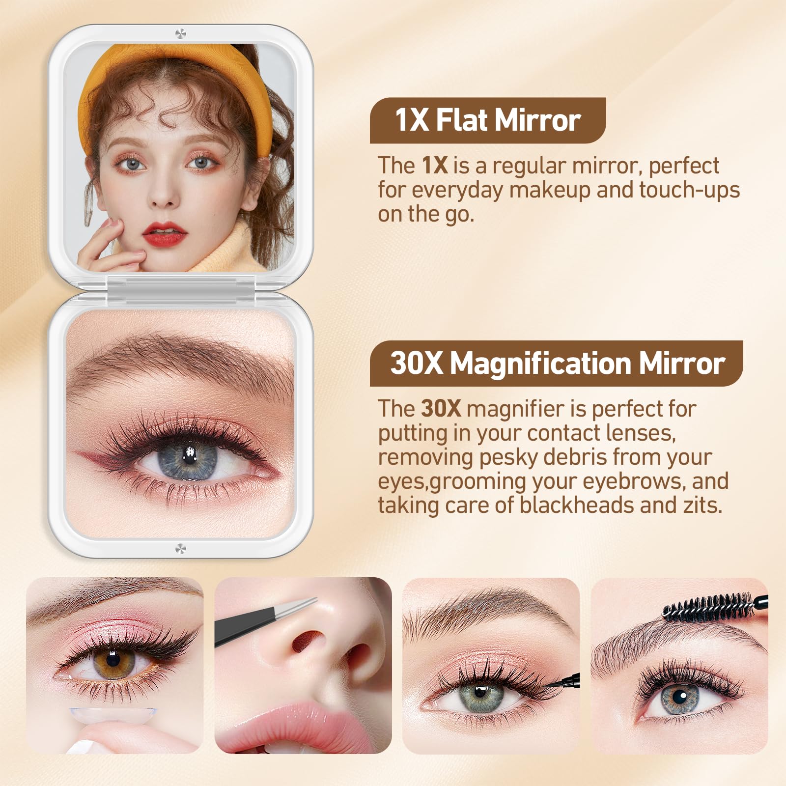 MOMOKUBA 30x Vergrösserungsspiegel – doppelseitig, klappbar, 8x8 cm, Weiss