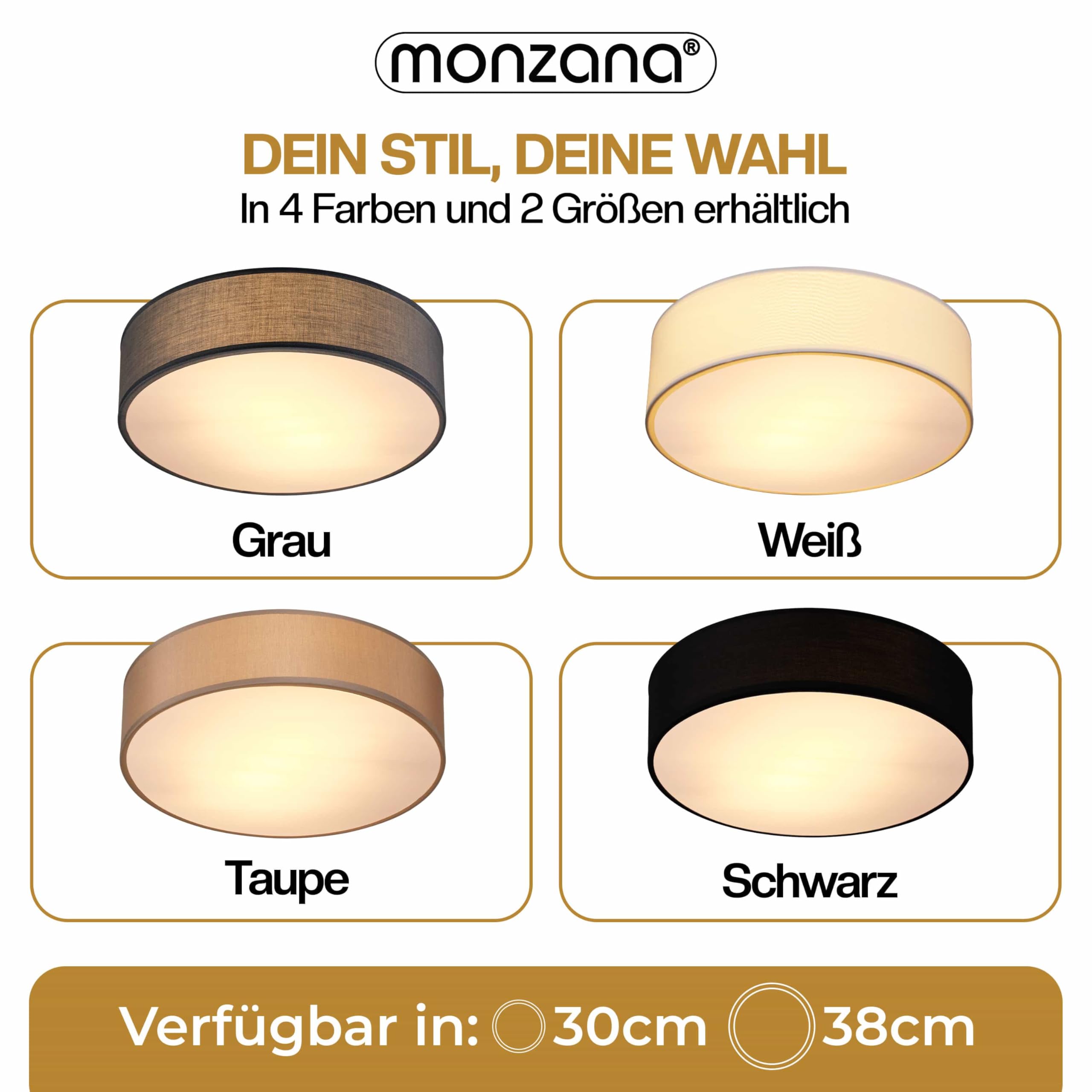 Monzana® Deckenlampe Stoff Wohnzimmer Schlafzimmer E27 Grau 38cm Rund 2-Flammig 40W Lampe Flur Küche Deckenstrahler Deckenleuchte Stoffdeckenlampe