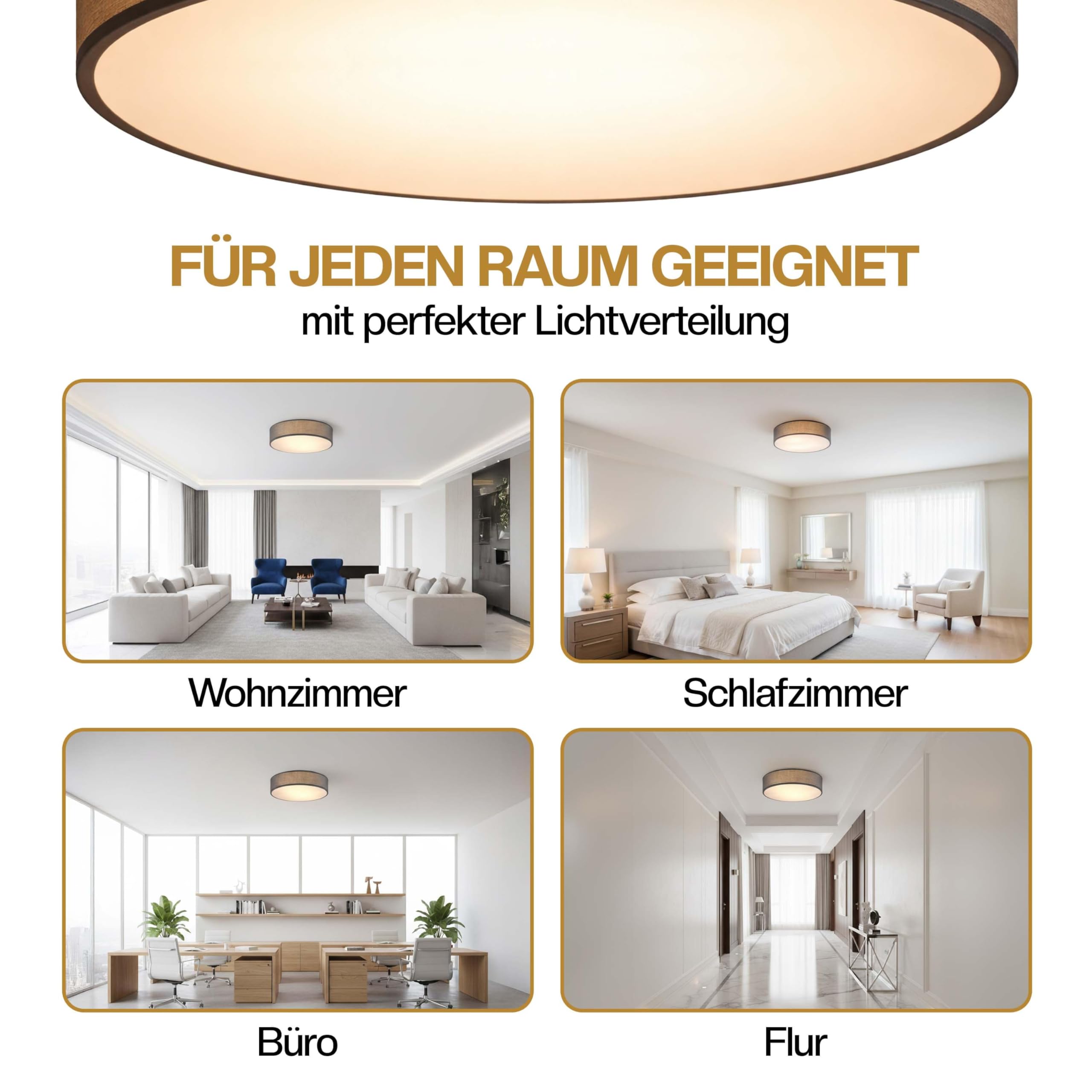 Vielseitig einsetzbare Deckenlampe mit elegantem Design und hervorragender Ausleuchtung!Die dekorative und trendige 2 flammige Stoffdeckenlampe von MONZANA ist ideal für deine Innenräume wie Wohnzimmer, Schlafzimmer, Esszimmer, Büro, Arbeitszimmer, Flur, Diele oder Kinderzimmer. Die Deckenleuchte erzeugt, dank der Abdeckung unter den Glühbirnen, ein angenehmes und blendfreies Licht. Dabei sorgt die Leuchte für ein gleichmässiges Licht, bei einer max. Wattleistung von 40. Durch das über der Fassung positionierte Reflektorblättchen wird auch das nach oben strahlende Licht nach unten reflektiert, wodurch der Lichteinfall besonders effizient genutzt wird.