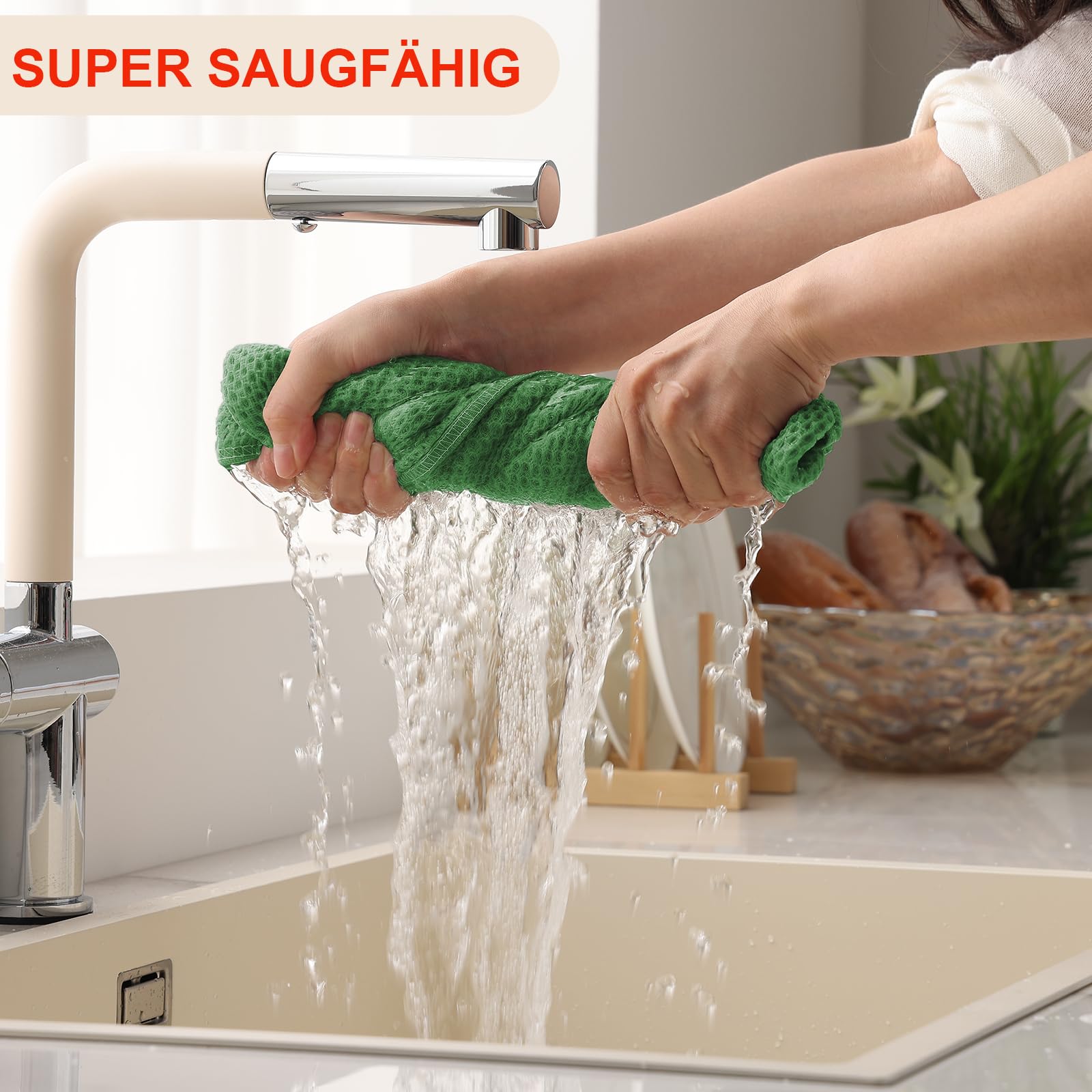- EINZIGARTIGES DESIGN: Das einzigartige Waffeldesign macht es haltbarer und wird bei jedem Waschen weicher. Das klassische hohle Wabengewebe macht dieses Set Geschirrtücher leicht, atmungsaktiv und super saugfähig, perfekt für alle Ihre Küchenaufgaben zum Trocknen, Wischen und Reinigen