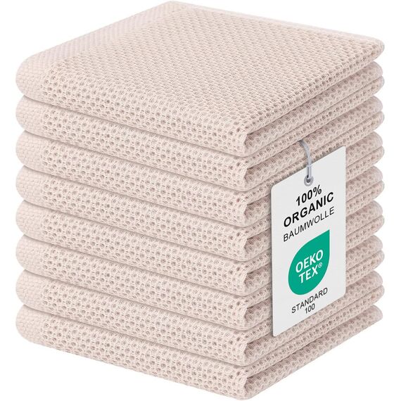 Moosfor Küchenhandtücher 100% Baumwolle, 8er Set 30 x 30 cm, Weiche Geschirrhandtücher Geschirrtücher Saugfähig Küchentücher Dicke Premium Geschirrtuch Spüllappen Putzlappen, Beige
