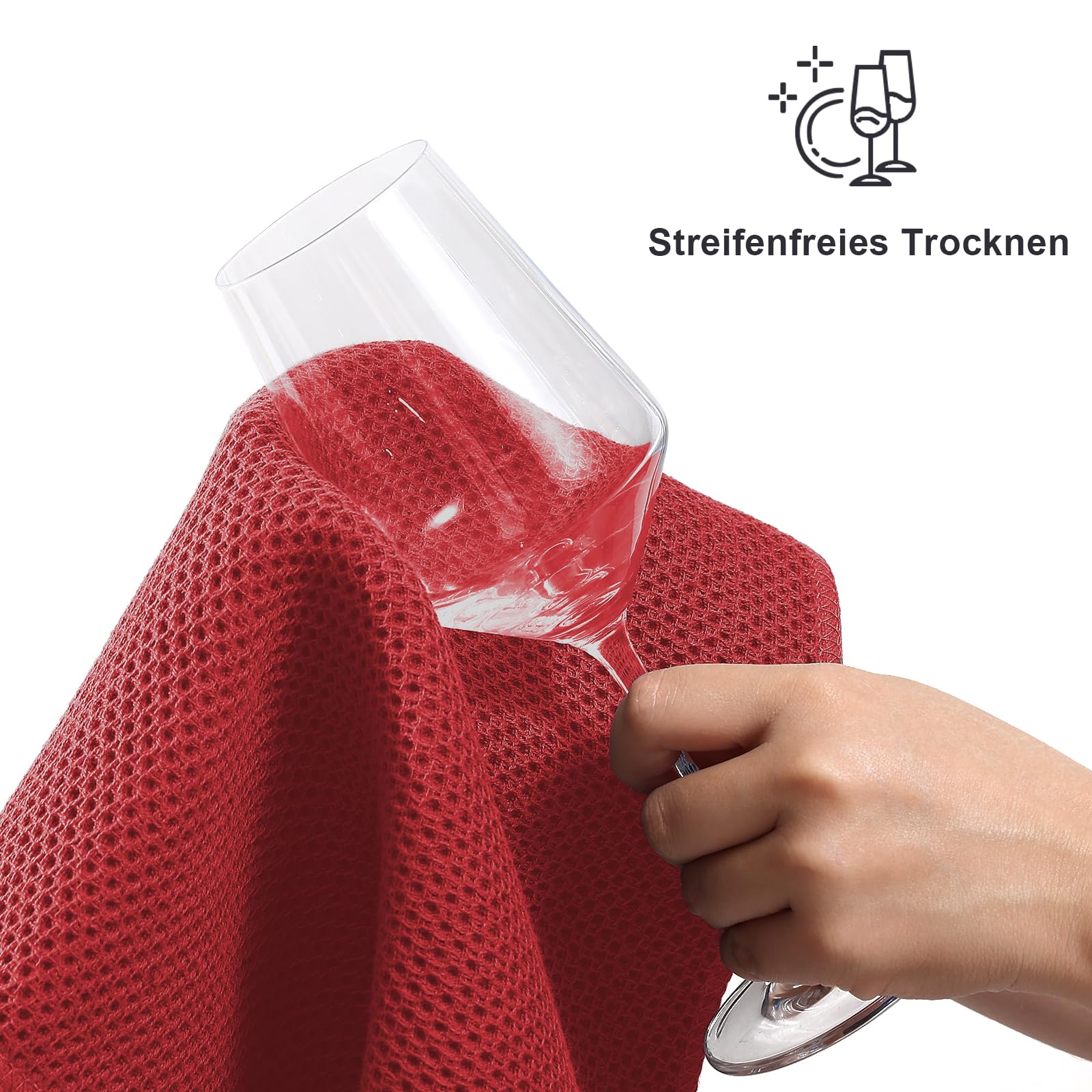 - EINZIGARTIGES DESIGN: Das einzigartige Waffeldesign macht es haltbarer und wird bei jedem Waschen weicher. Das klassische hohle Wabengewebe macht dieses Set Geschirrtücher leicht, atmungsaktiv und super saugfähig, perfekt für alle Ihre Küchenaufgaben zum Trocknen, Wischen und Reinigen