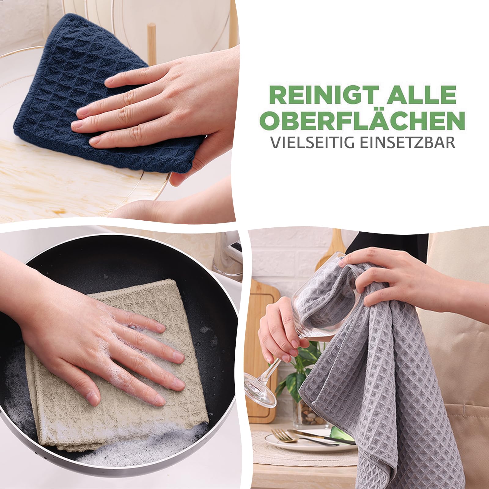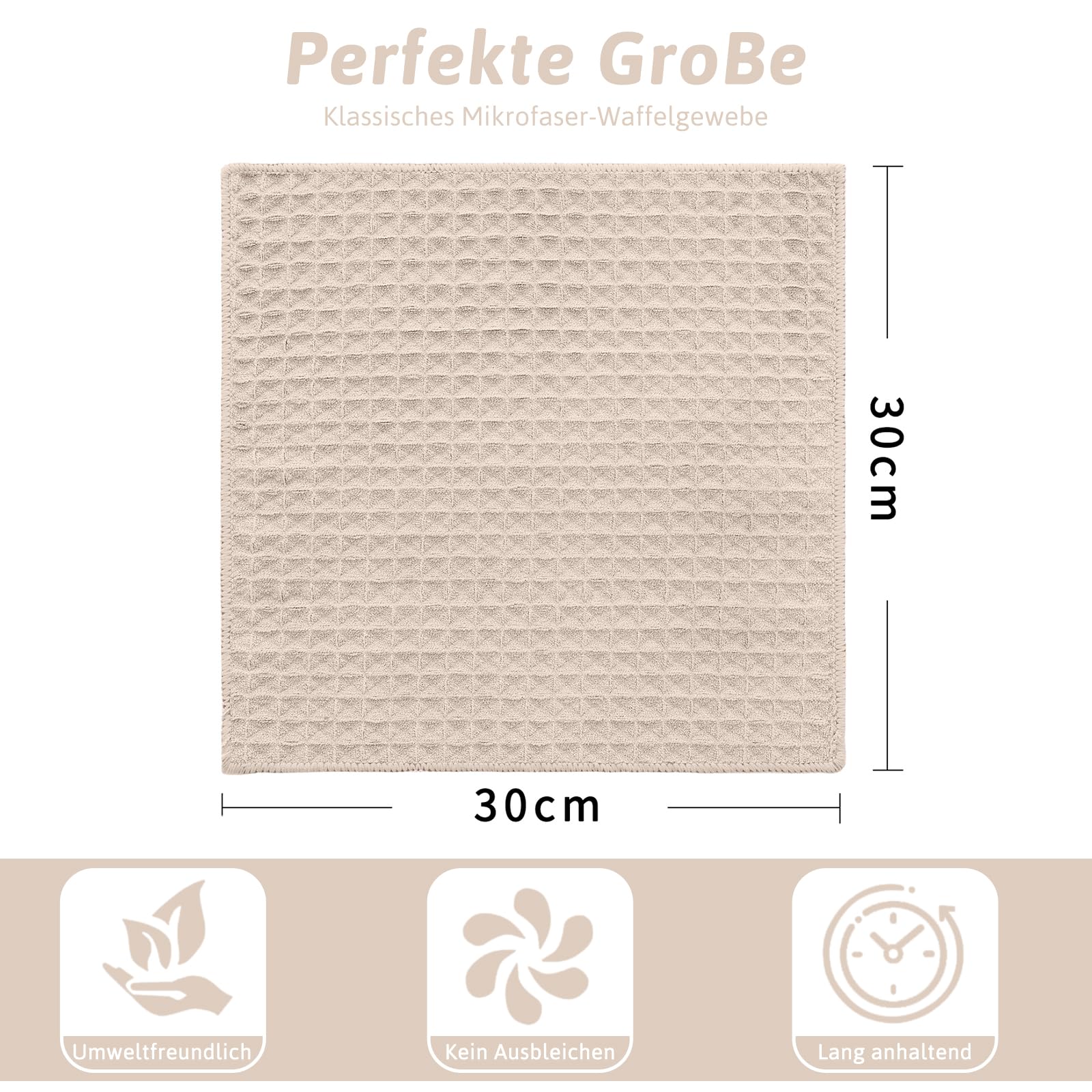 Moosfor Microfasertücher, 6er-Set, Saugfähige Fusselfrei Küchentücher Spültücher für Küche Dicke Barista Tuch Geschirrtücher Lappen, 30 x 30 cm, Beige