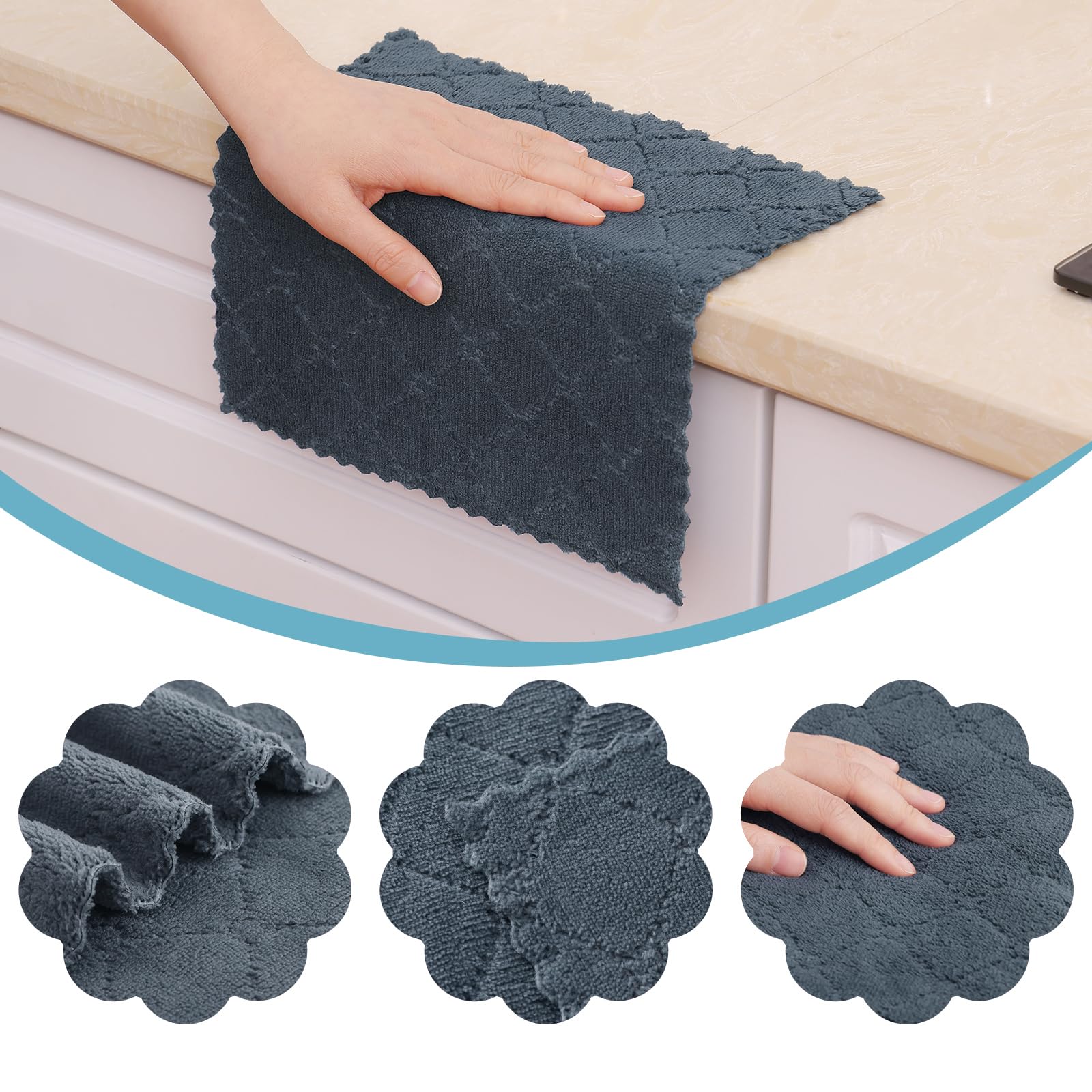 Moosfor Reinigungstücher Mikrofasertücher Waschbar Putzlappen Mikrofaser Weiche Fusselfrei Geschirrtücher Lappen Küchentücher, 12 Stück, 25x25 cm, Dunkelgrau