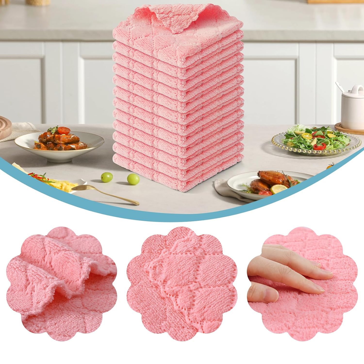 Moosfor Reinigungstücher Mikrofasertücher Waschbar Putzlappen Mikrofaser Weiche Fusselfrei Geschirrtücher Lappen Küchentücher, 12 Stück, 25x25 cm, Rosa