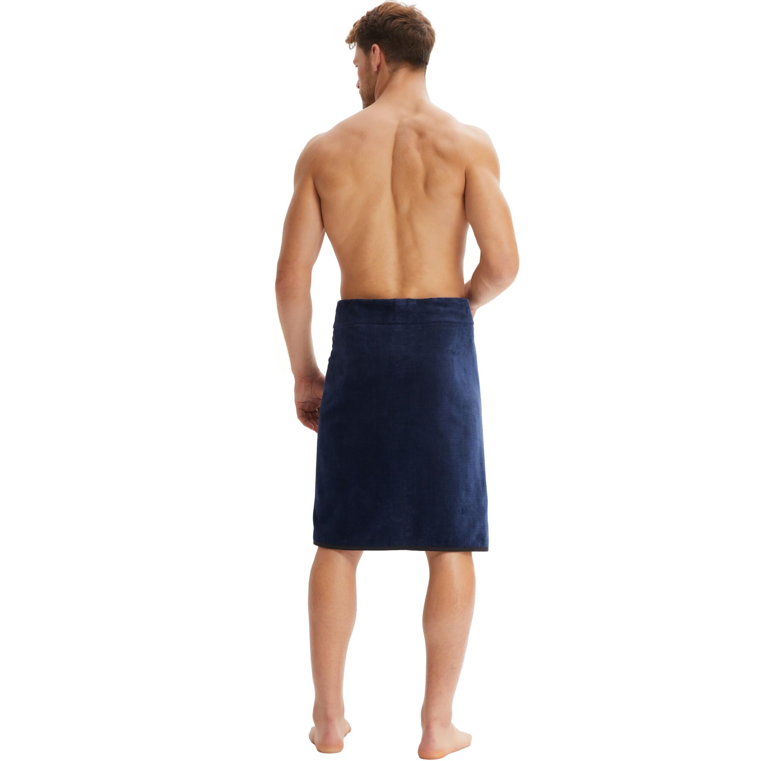Morgenstern Saunakilt Herren mit Klettverschluss 100% Baumwolle Frottee Oeko-TEX® Handtuch 60x146 cm Saunahandtuch mit Tasche Jan Blau