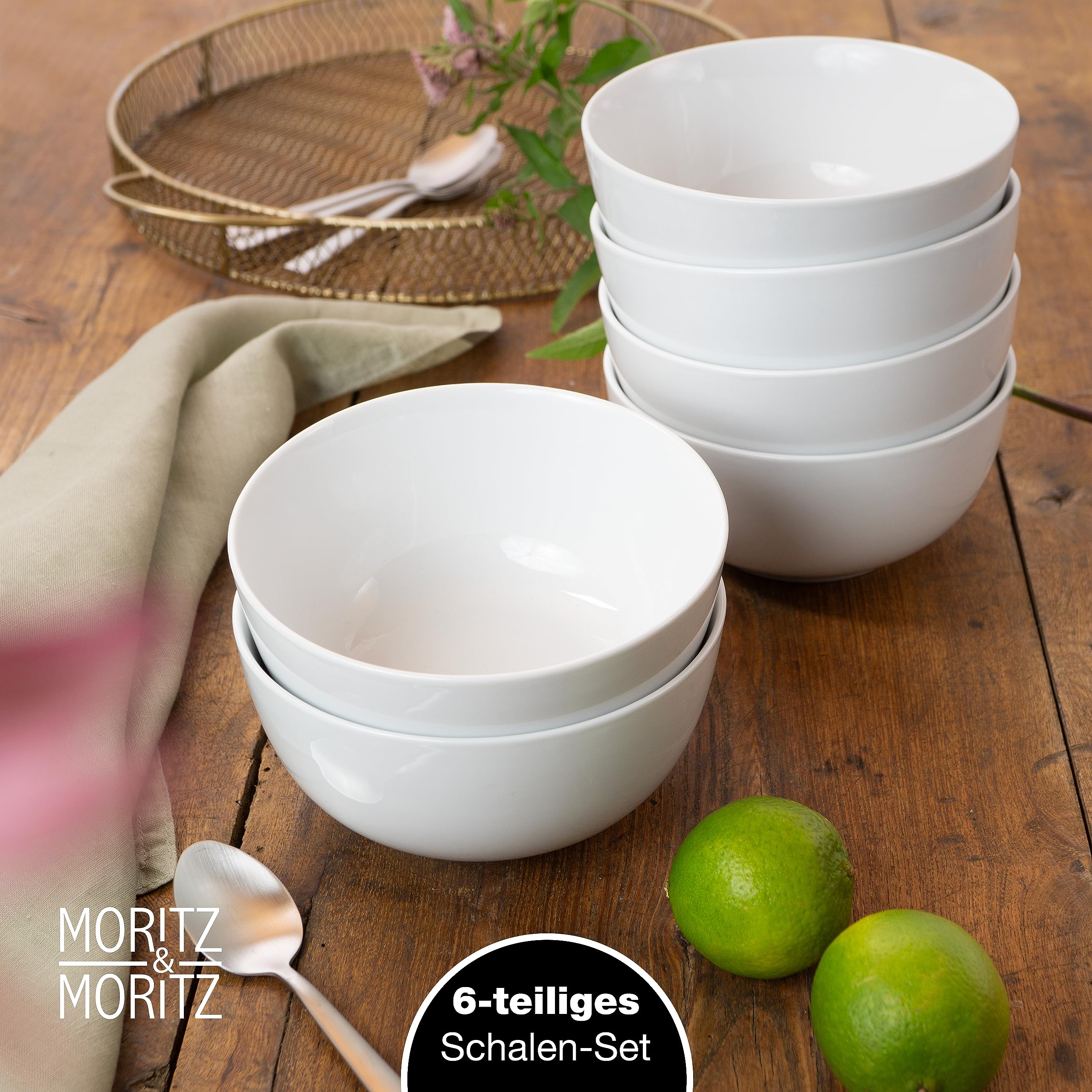 Moritz & Moritz BASIC Schüssel Set 6-teilig - Ø 14 x 7 cm mit ca. 500 ml Füllmenge - aus hochwertigem Porzellan in klassischem Weiss - Für Suppen, Salate, Desserts, Müsli und mehr