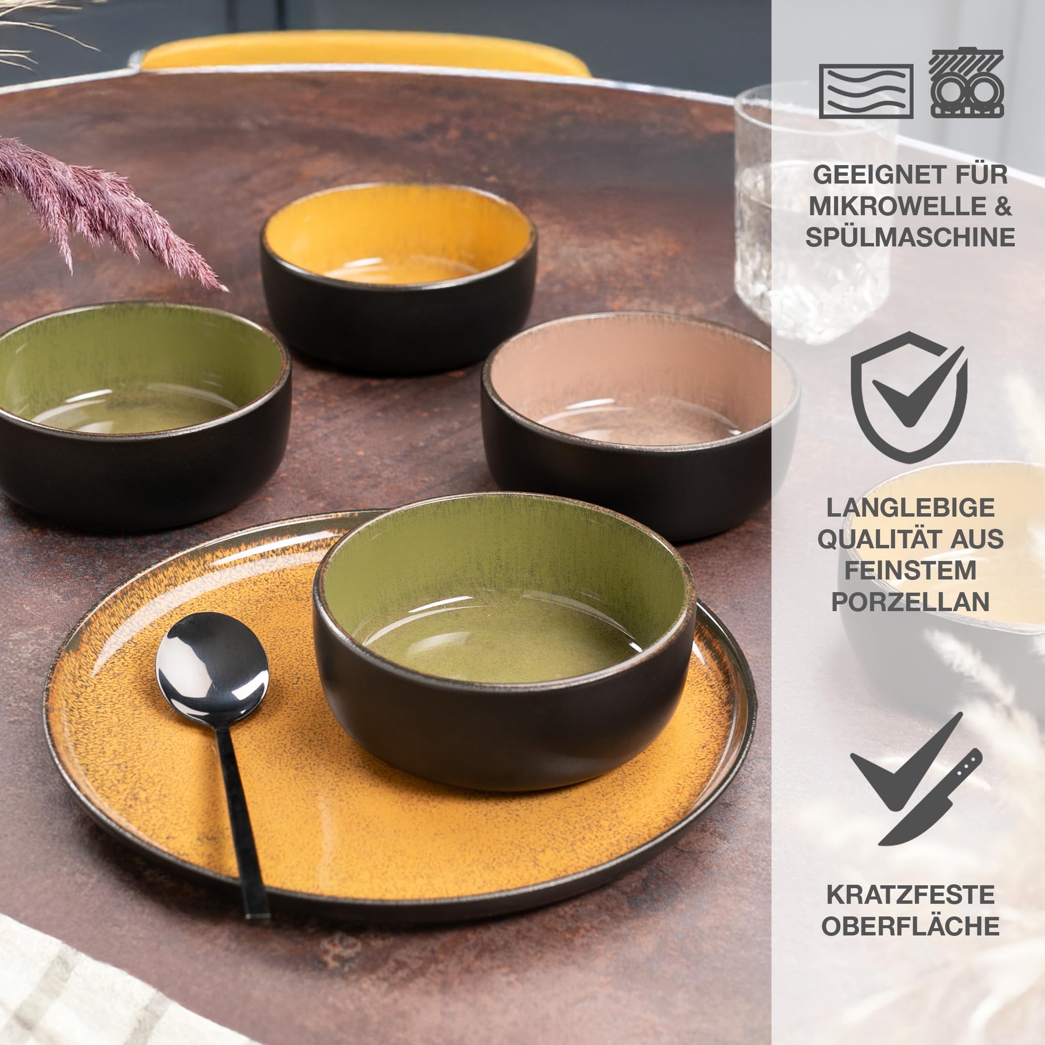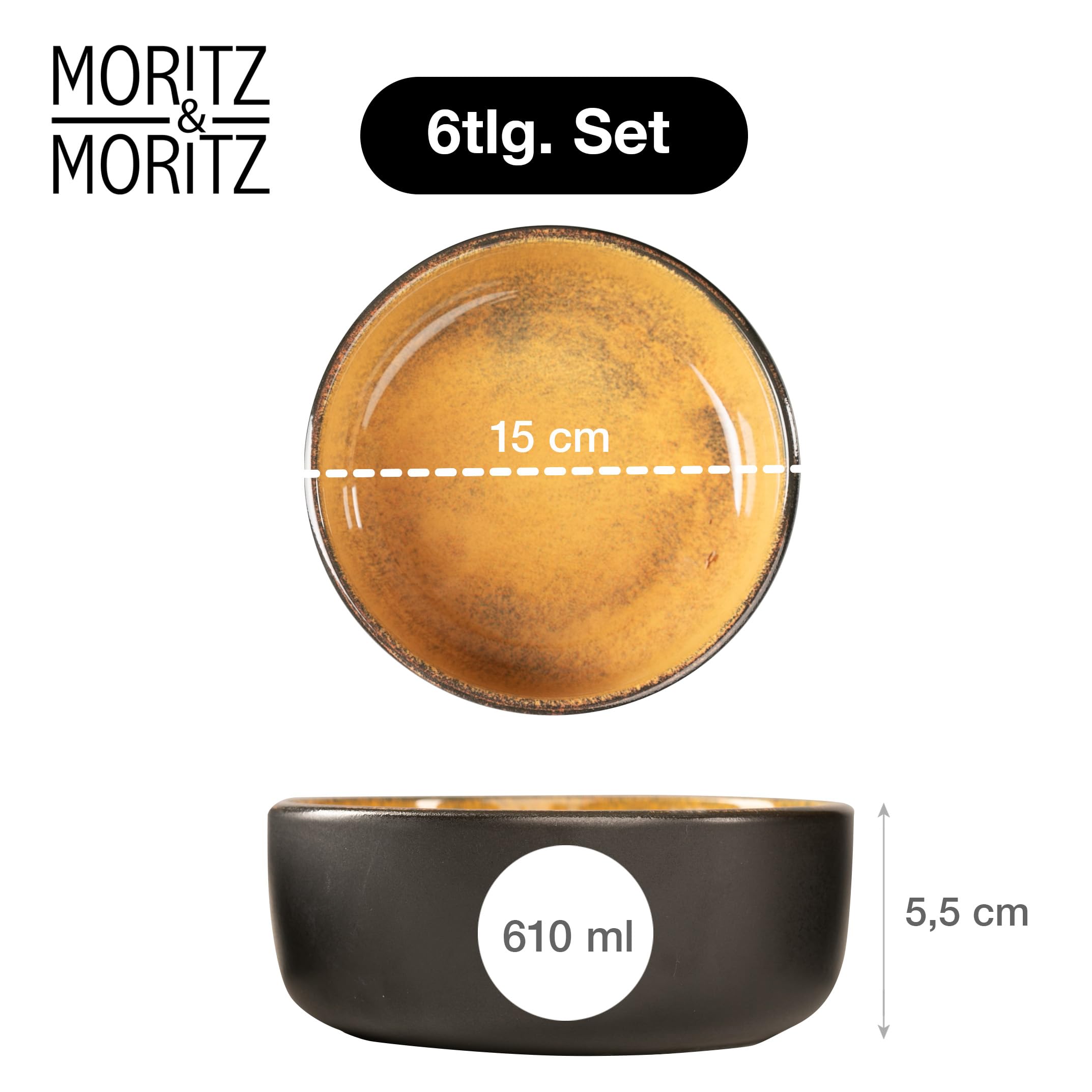 Moritz & Moritz VIDA 6x Müslischalen Vintage - Stylisches und robustes Schalen Set aus Porzellan für Müsli, Suppen & Salate - Spülmaschinenfest, mikrowellengeeignet, ideal für den täglichen Gebrauch