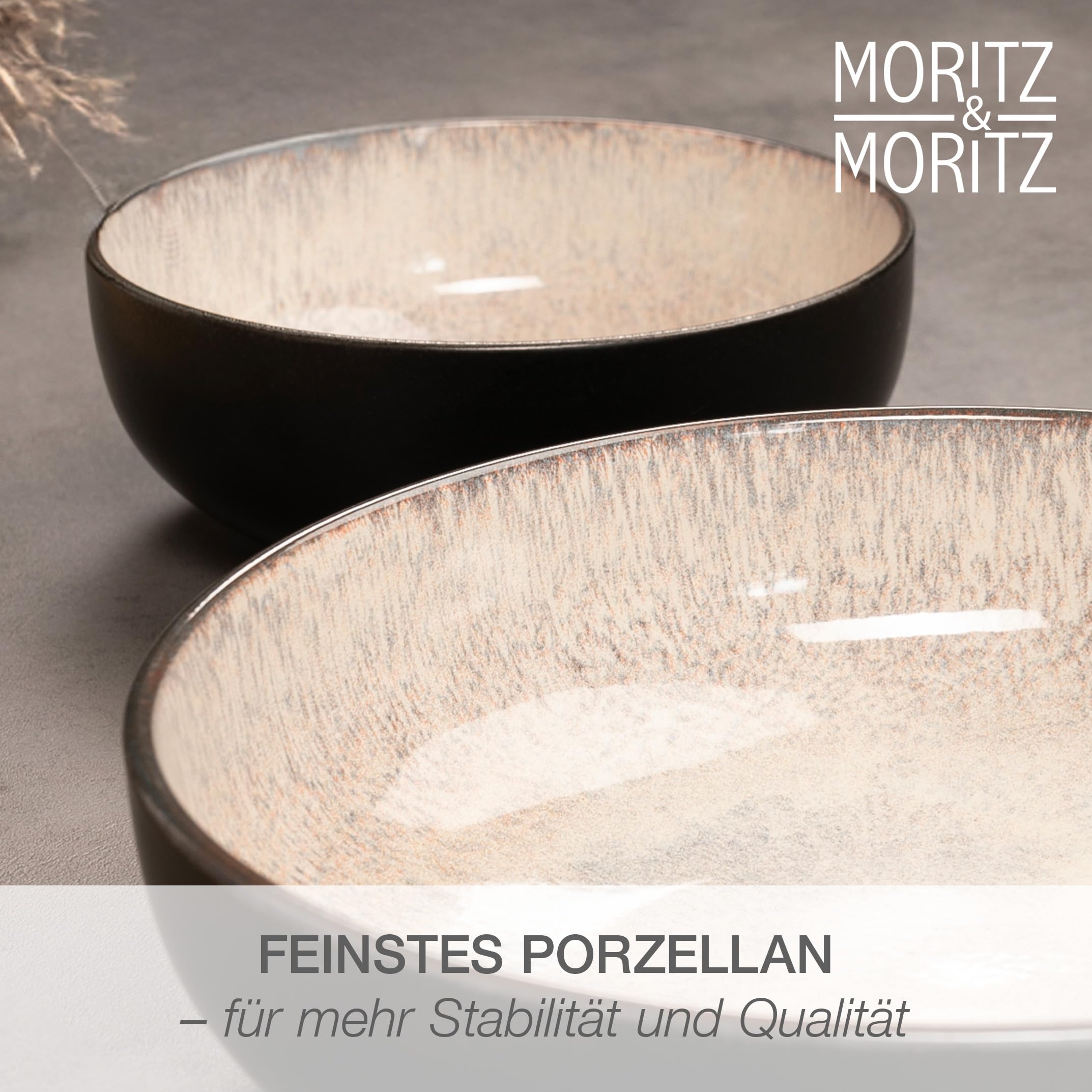 Moritz & Moritz VIDA Servierschalen Set Beige - 2x Grosse Schalen aus hochwertigem Porzellan, Modern & Zeitlos, Mikrowellen- & Spülmaschinengeeignet - Perfekt für Salate, Pasta, Snacks & mehr
