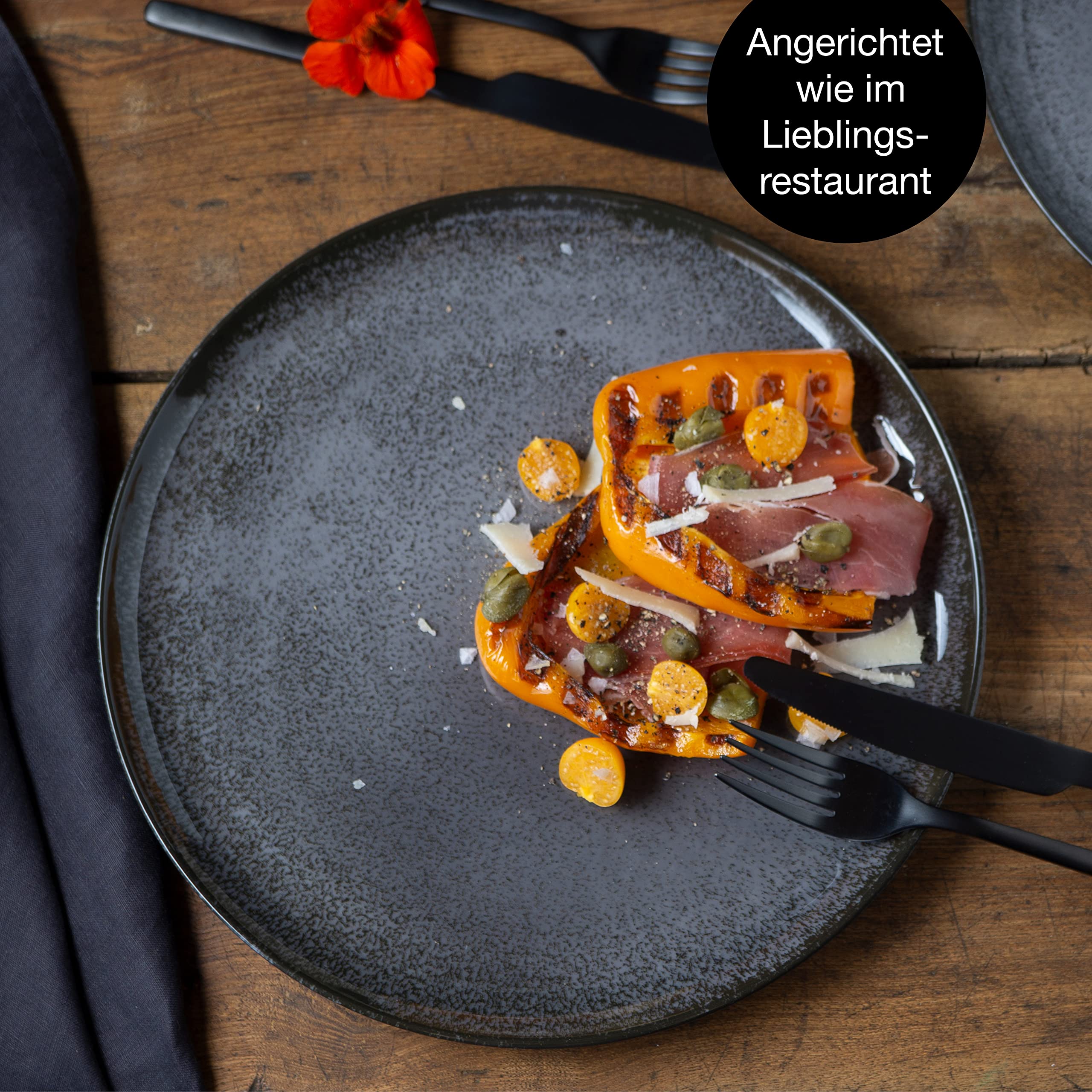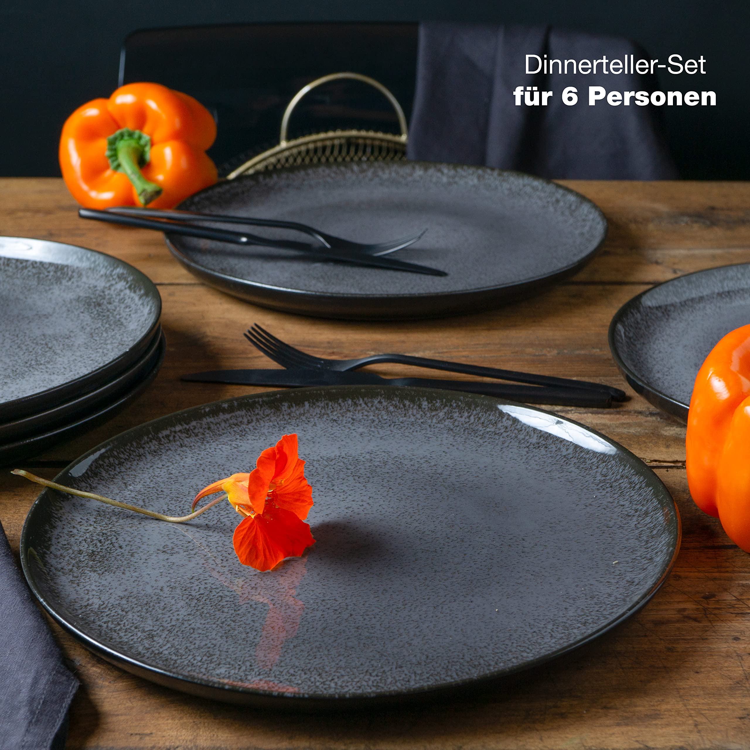 Moritz & Moritz VIDA 6er Dinner Teller Set Anthrazit - Dinnerteller für 6 Personen - Porzellan spülmaschinen- und mikrowellengeeignet