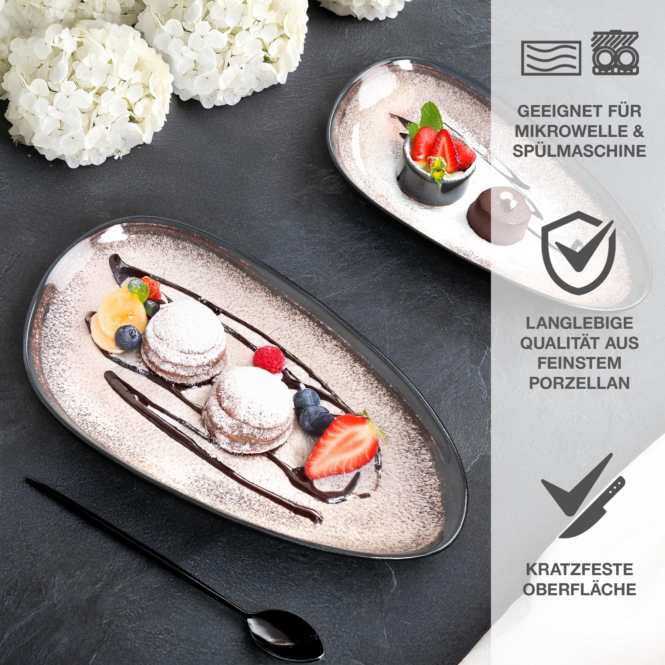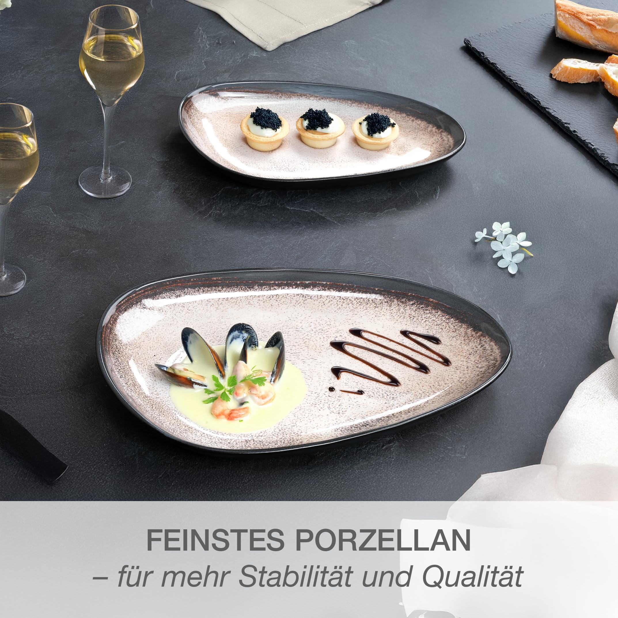 Moritz & Moritz VIDA Servierteller Set Beige - 2x Grosse Teller aus hochwertigem Porzellan, Modern & Zeitlos, Mikrowellen- & Spülmaschinengeeignet - Perfekt für Salate, Grillfleisch, Snacks & mehr