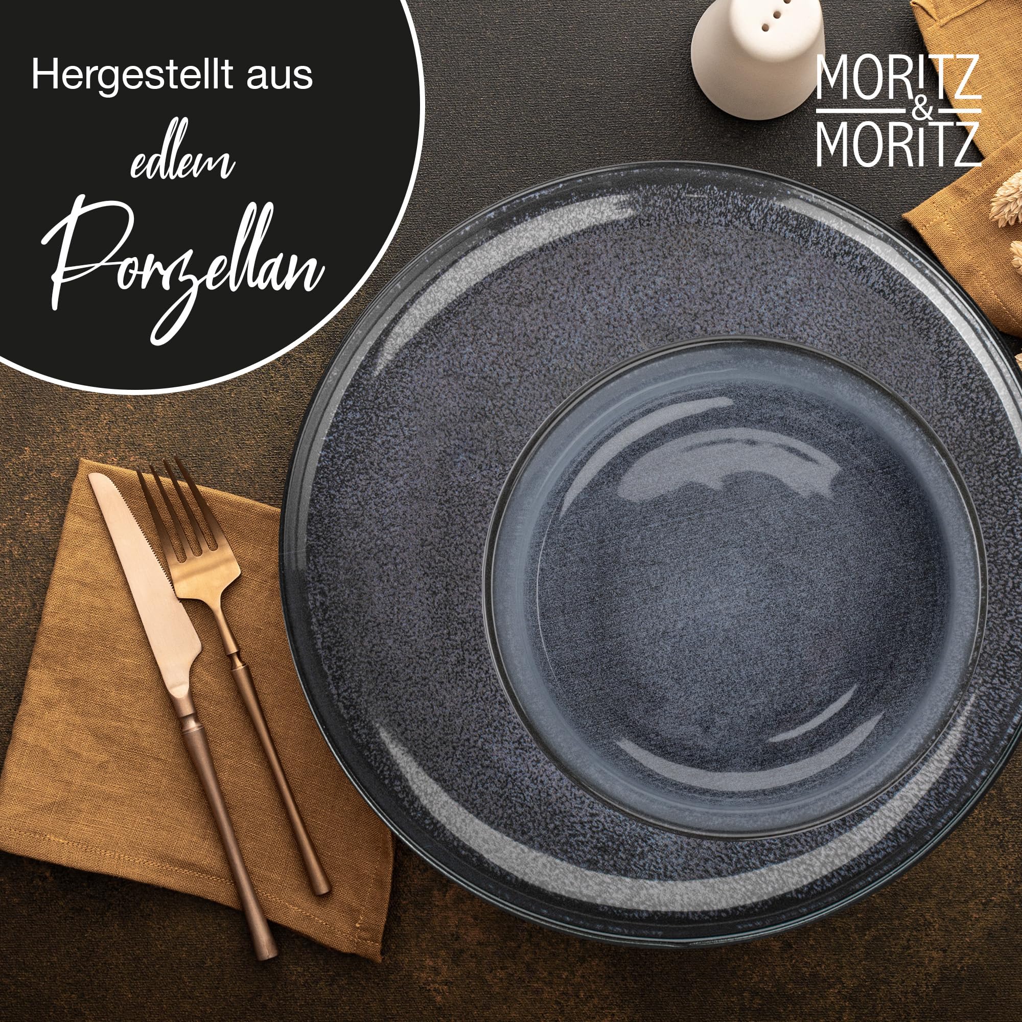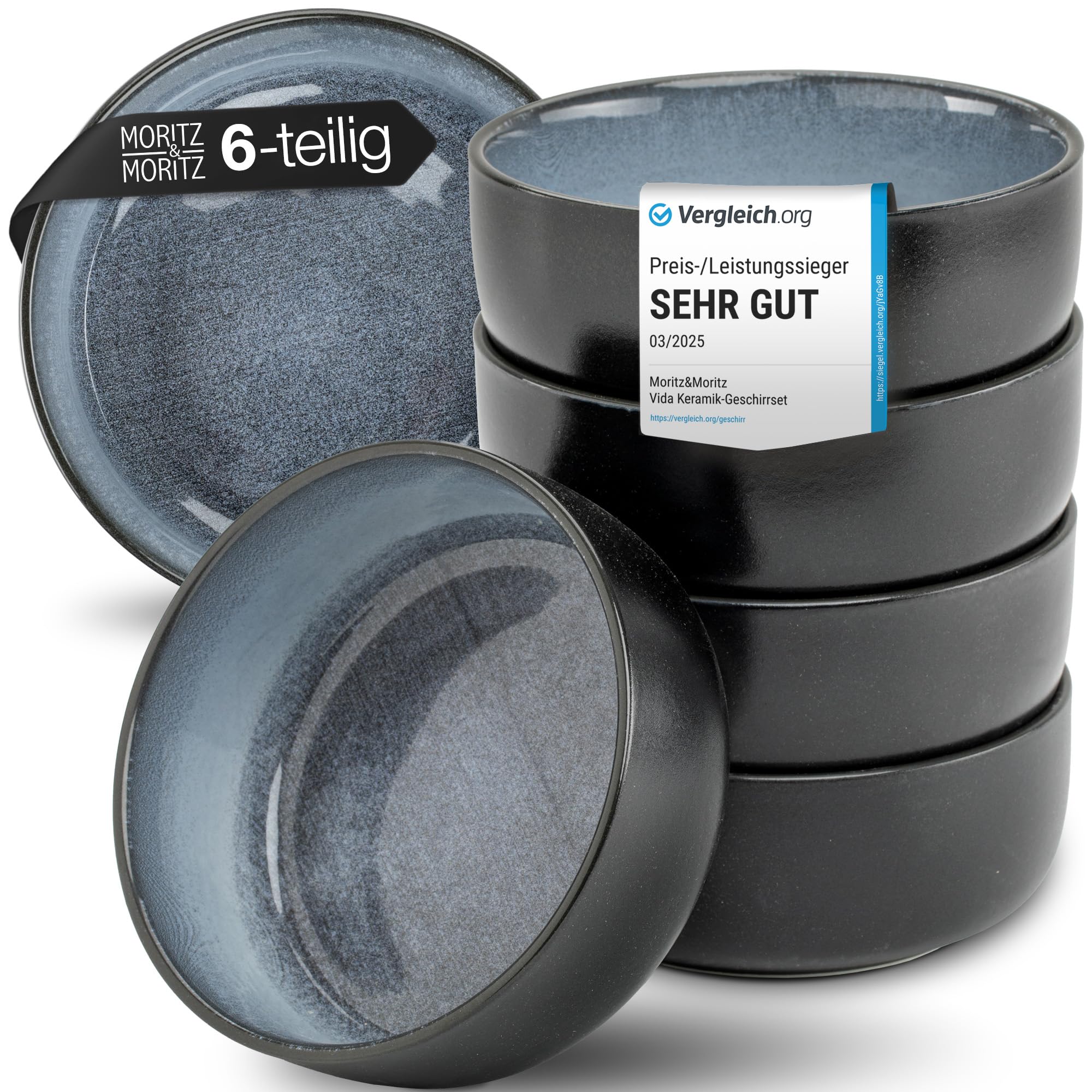 Moritz & Moritz VIDA 6x Müslischalen Blau - Stylisches und robustes Schalen Set aus Porzellan für Müsli, Suppen & Salate - Spülmaschinenfest, mikrowellengeeignet, ideal für den täglichen Gebrauch