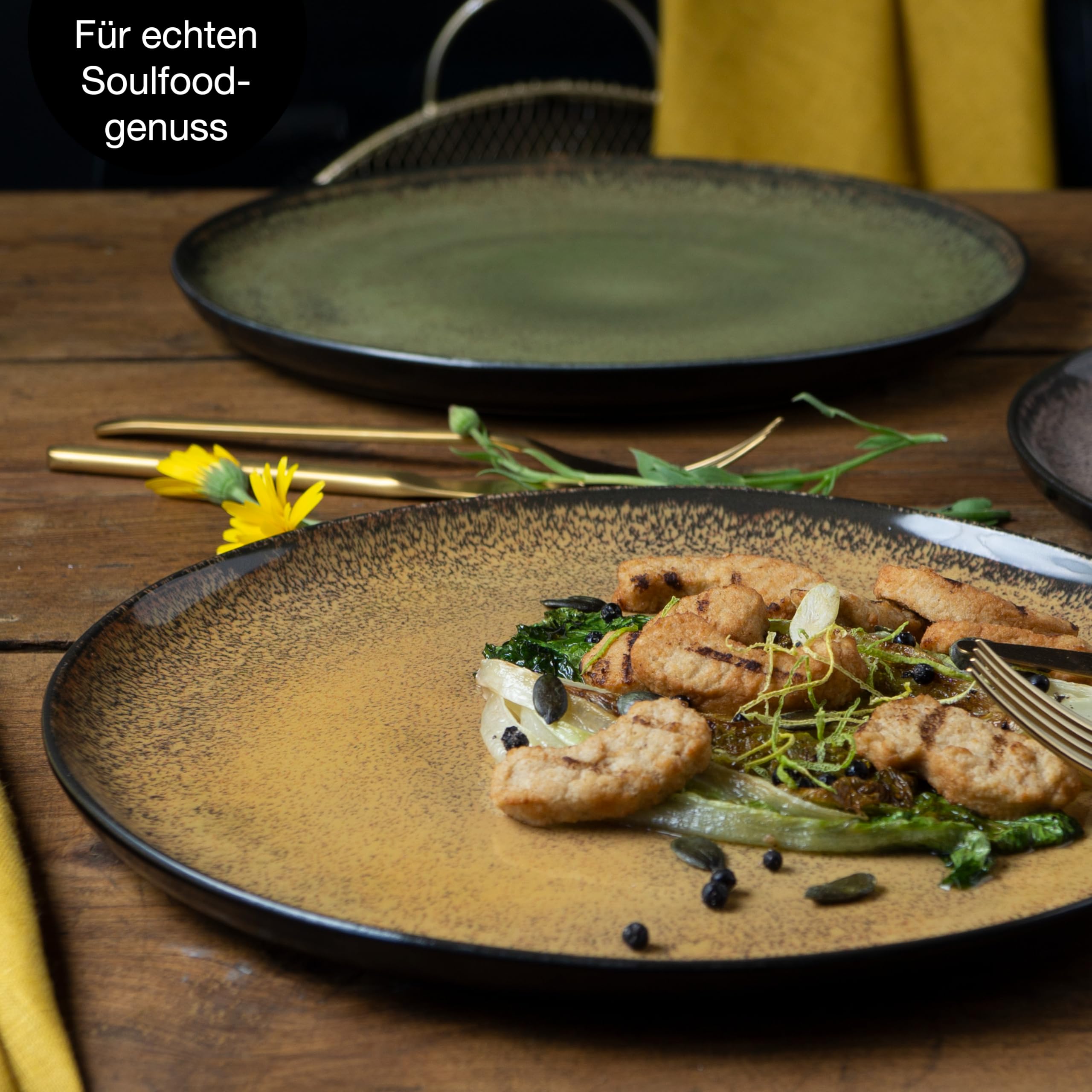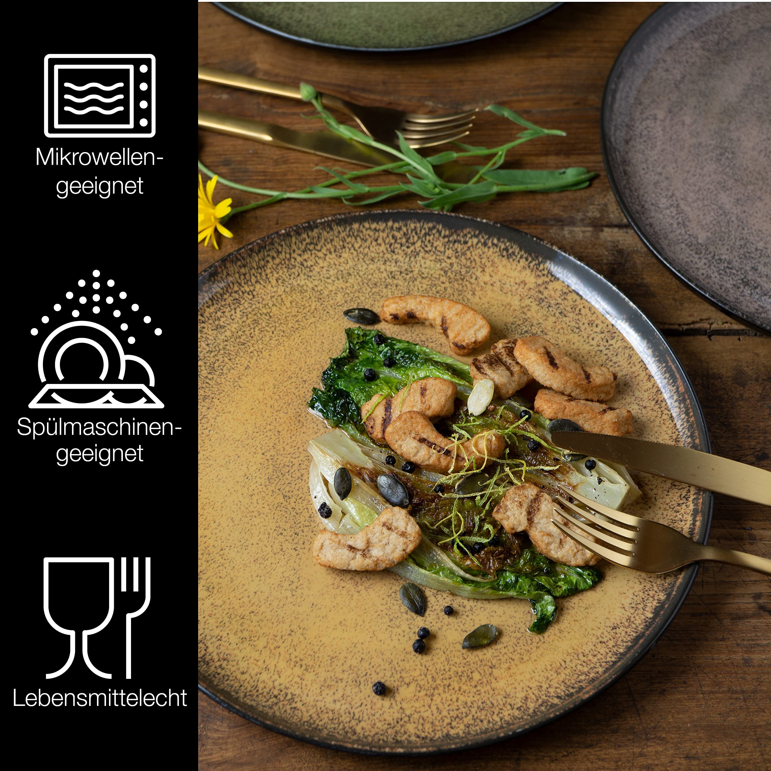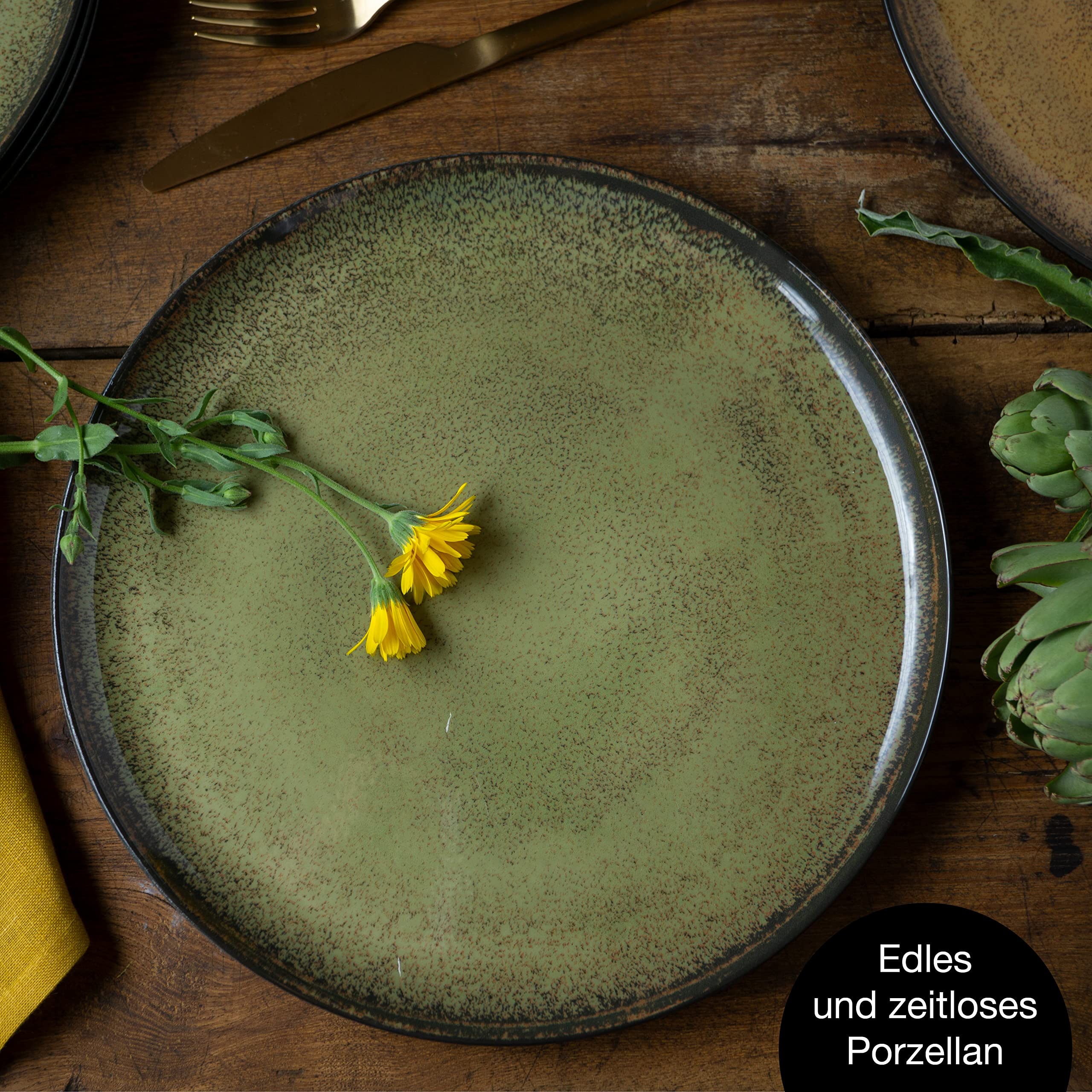 Moritz & Moritz VIDA 6er Dinner Teller Set Gelb-Grün-Rosa - Dinnerteller für 6 Personen - Porzellan spülmaschinen- und mikrowellengeeignet