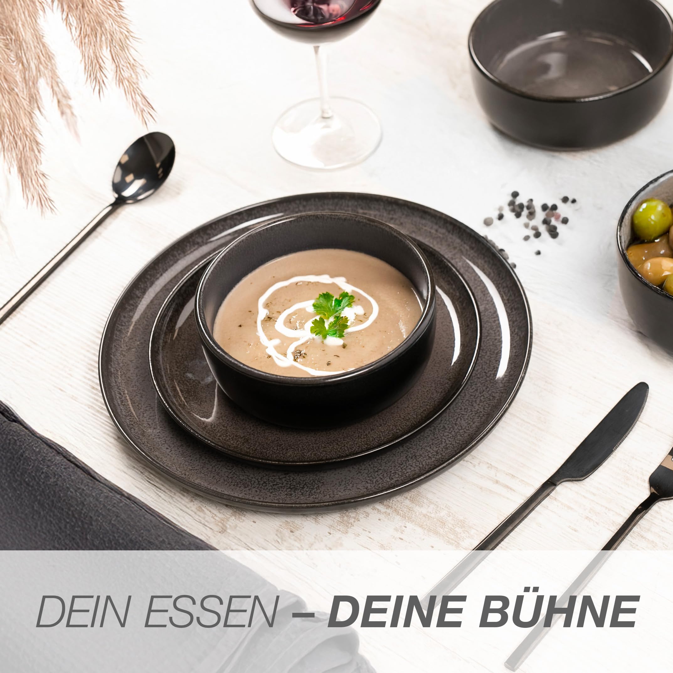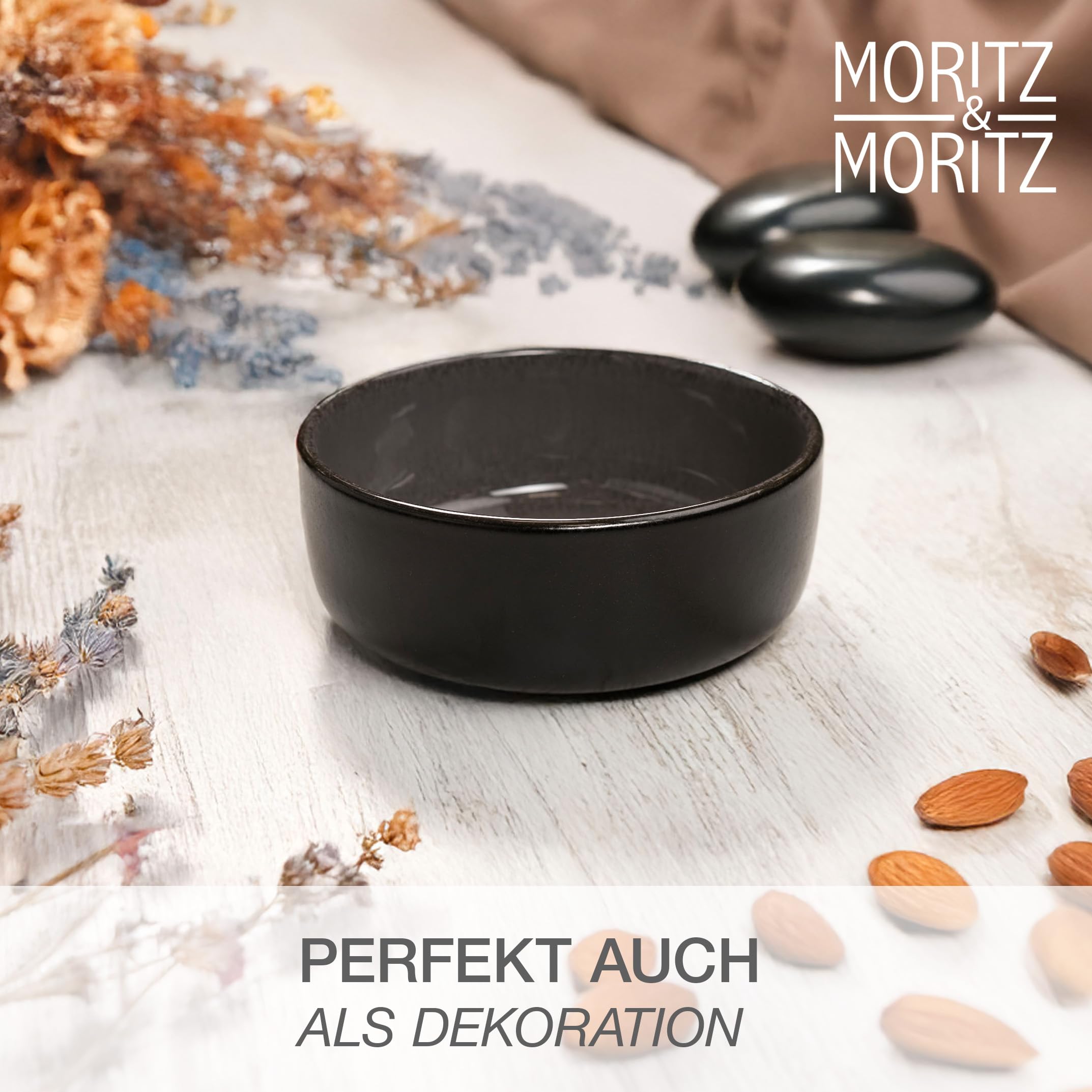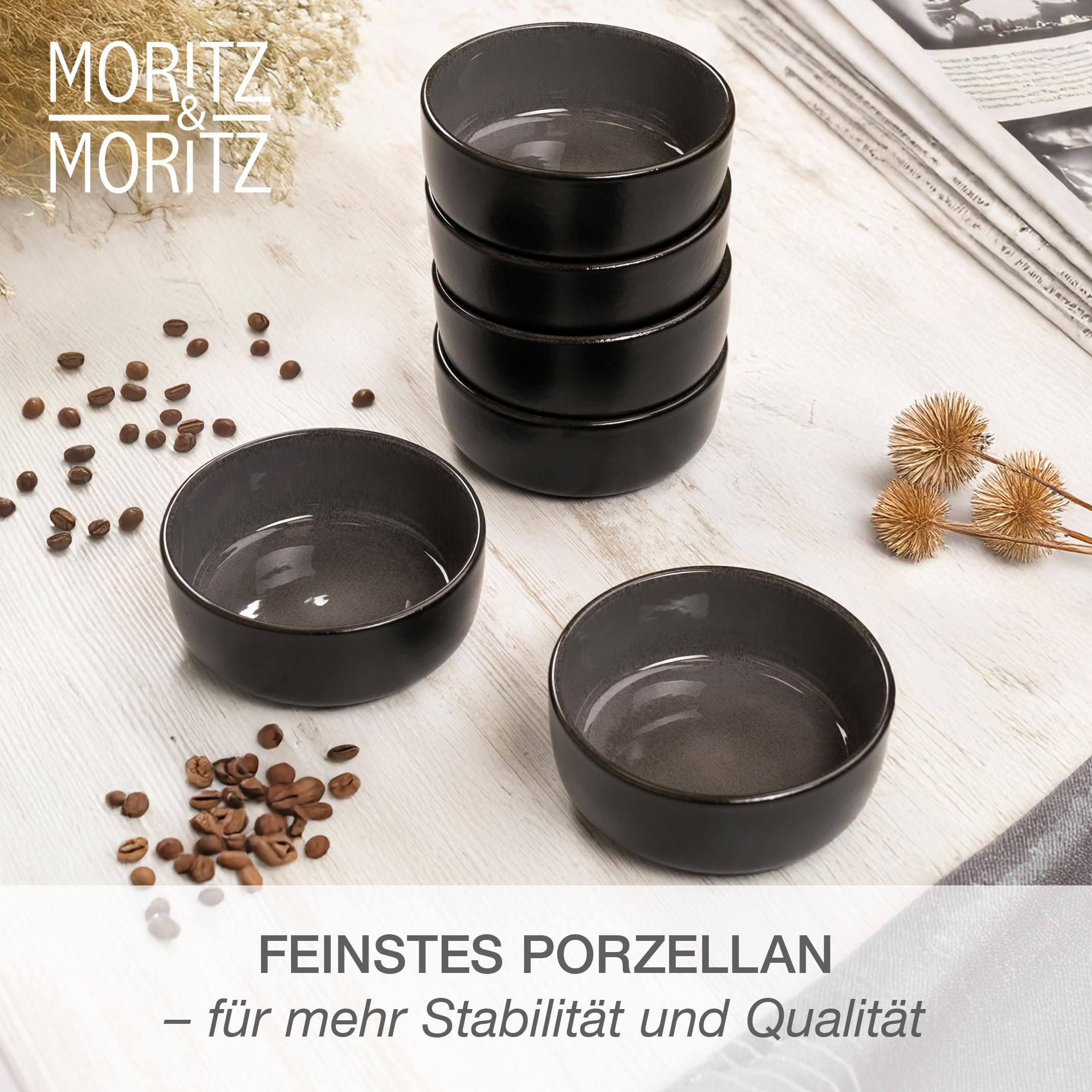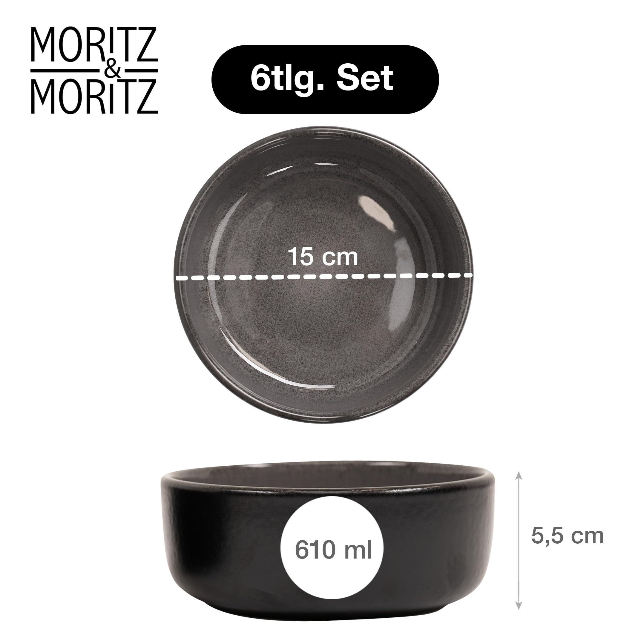 Moritz & Moritz VIDA 6x Müslischalen Anthrazit - Stylisches und robustes Schalen Set aus Porzellan für Müsli, Suppen & Salate - Spülmaschinenfest, mikrowellengeeignet, ideal für den täglichen Gebrauch
