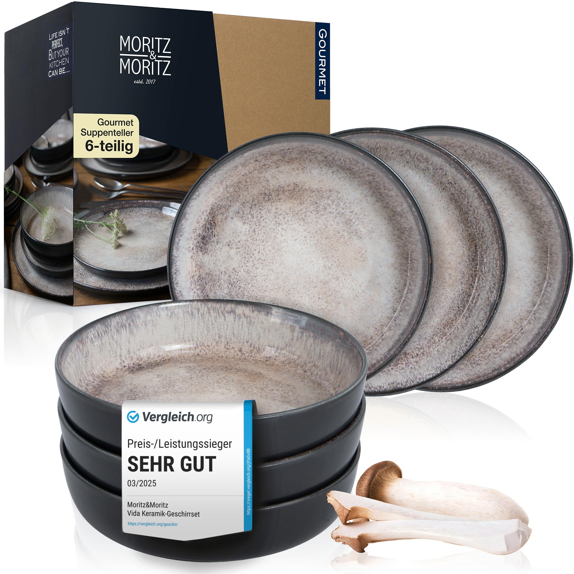 Bereichern Sie Ihr nächstes ausgedehntes Frühstück, Abend- oder auch Mittagessen mit der Familie oder mit Gästen um ein Highlight der Marke Moritz & Moritz, das allen Teilnehmern garantiert direkt positiv ins Auge fällt. Mit viel Liebe zur modernen Sachlichkeit gestaltet ist es unaufdringlich und zeitlos, sodass Sie lange Jahre Freude an Ihrem neuen Geschirr haben werden. Die Moritz & Moritz Suppenteller aus hochwertigem Porzellan sind spülmaschinen- und mikrowellengeeignet. In top aktuellem Design bieten sie sich auch hervorragend als aussergewöhnliches Geschenk, z. B. für Ersteinrichter, zur Hochzeit oder zum Geburtstag an.