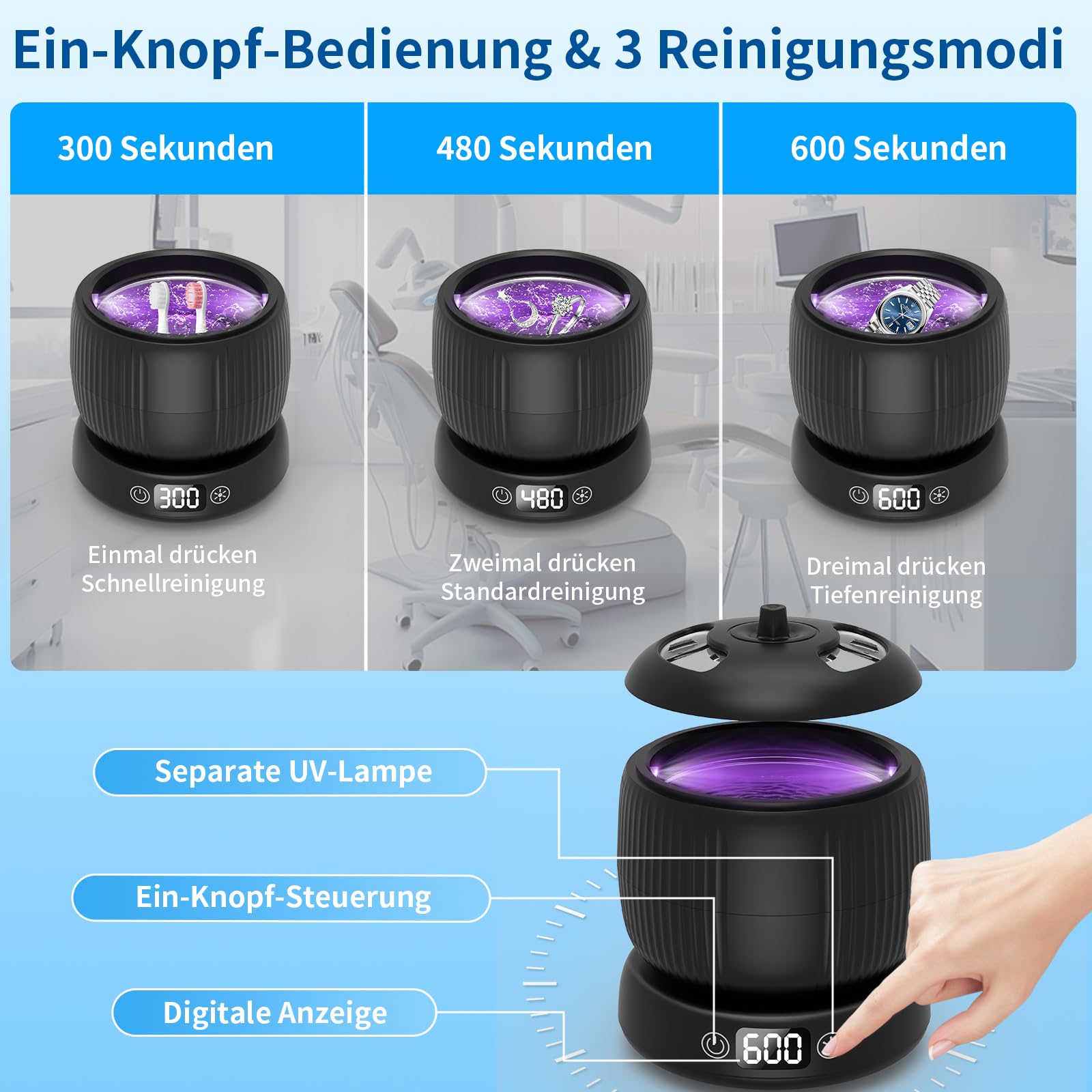 Das Morole Ultraschallreinigungsgeraet 230 ml ist die ideale Loesung fuer alle, die ihre Dentalprodukte und Schmuck hygienisch, effizient und komfortabel reinigen moechten – kompakt, leistungsstark und alltagstauglich.