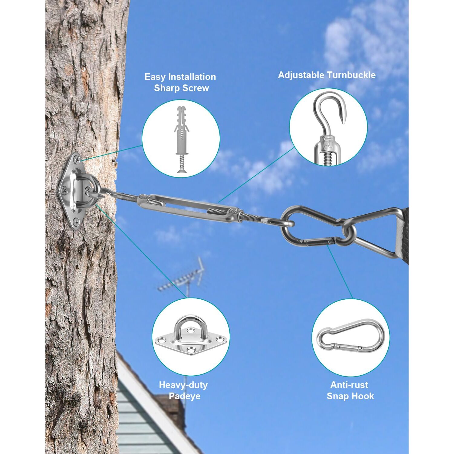 Sonnensegel Hardware Kit 304 Edelstahl Sonnenschutz Vordach Installationsset für die Installation von rechteckigen und dreieckigen Schatten Segeln Garten Beschattungs Kit…