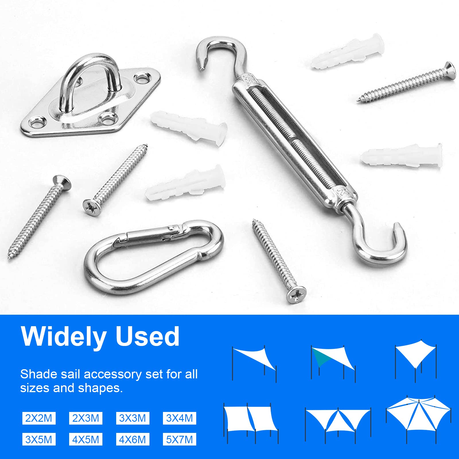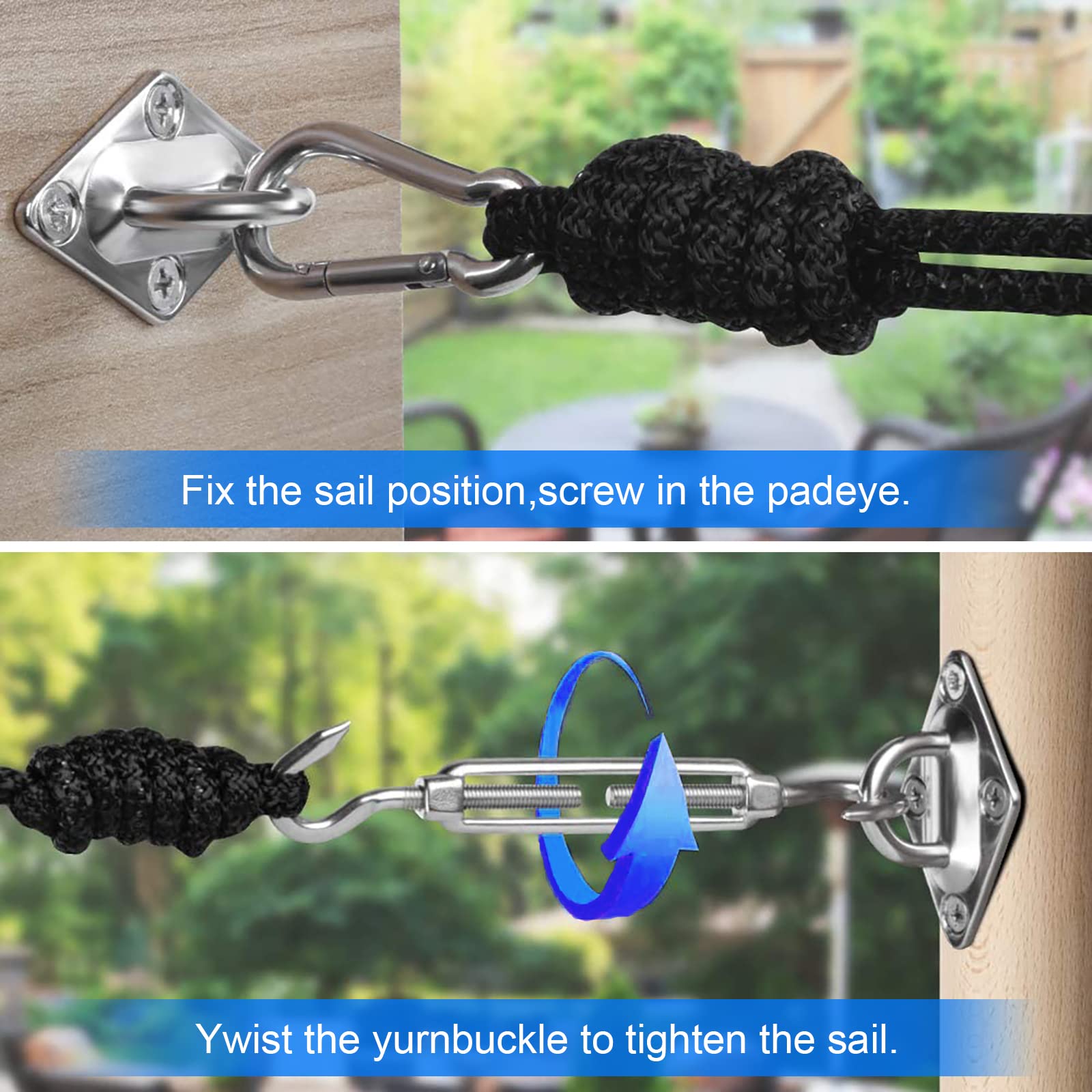 Sonnensegel Befestigung Set M8 Befestigung HardwareKit 304 Edelstahl Markisen Befestigungsset für Garten, sonnensegel zubehör Befestigung for Dreieck und Quadrat Hardware Zubehör Kit