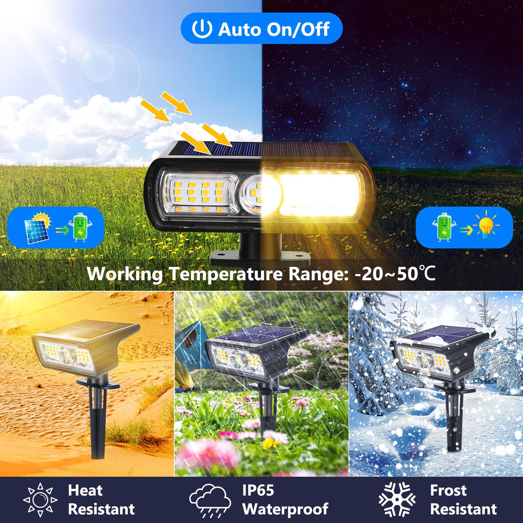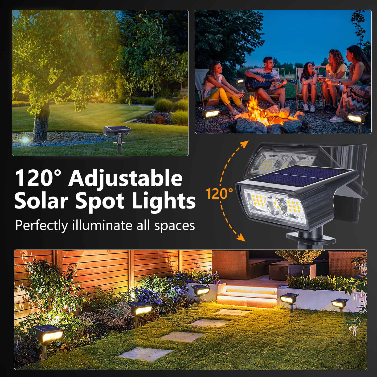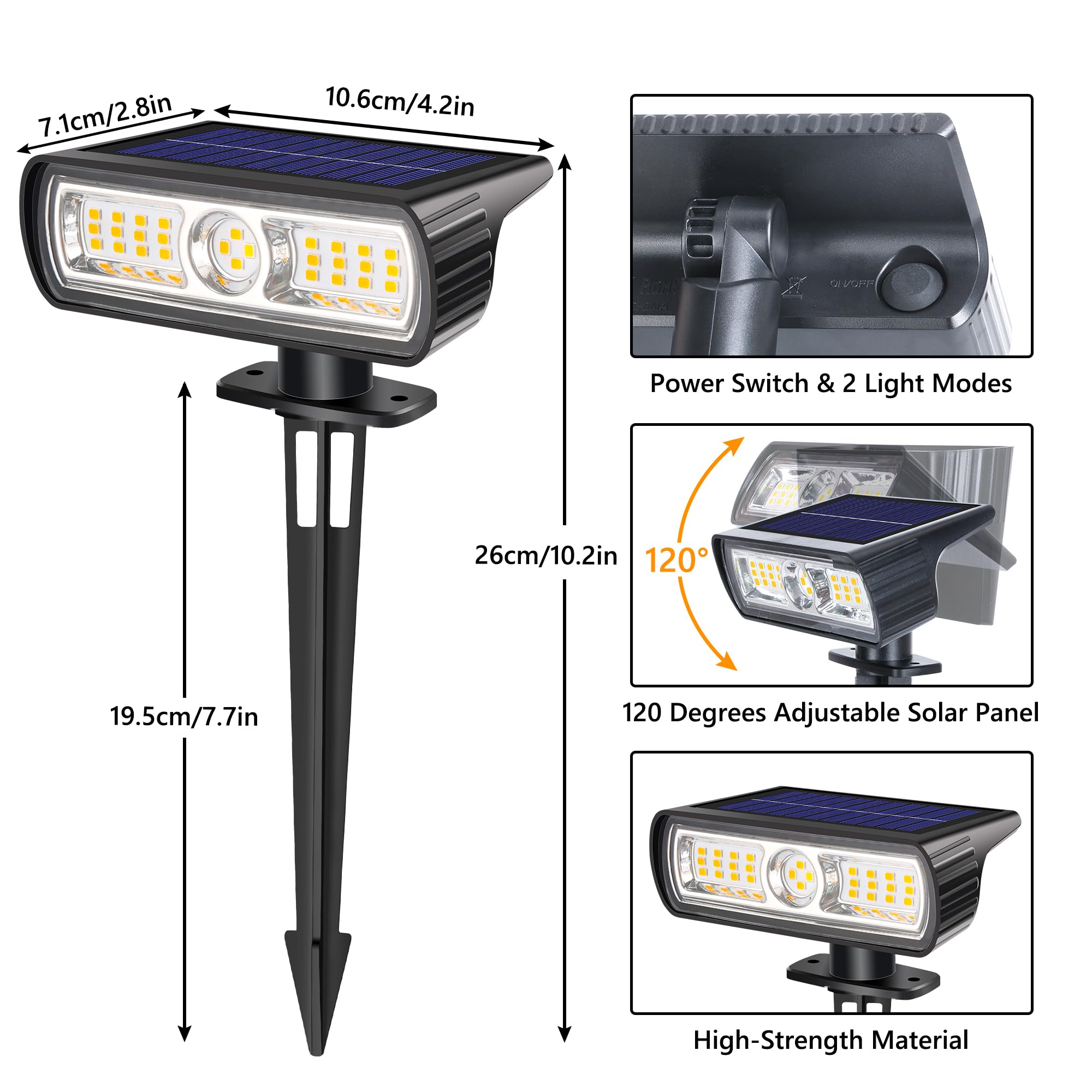 Moxled Solarlampen für Aussen Garten, 3000K Warmweiss Solar Strahler 4 Stück, IP65 Wasserdicht Gartenleuchten, 2 Helligkeitsmodi Solarleuchten für Aussen Garten, Hof, Gehweg