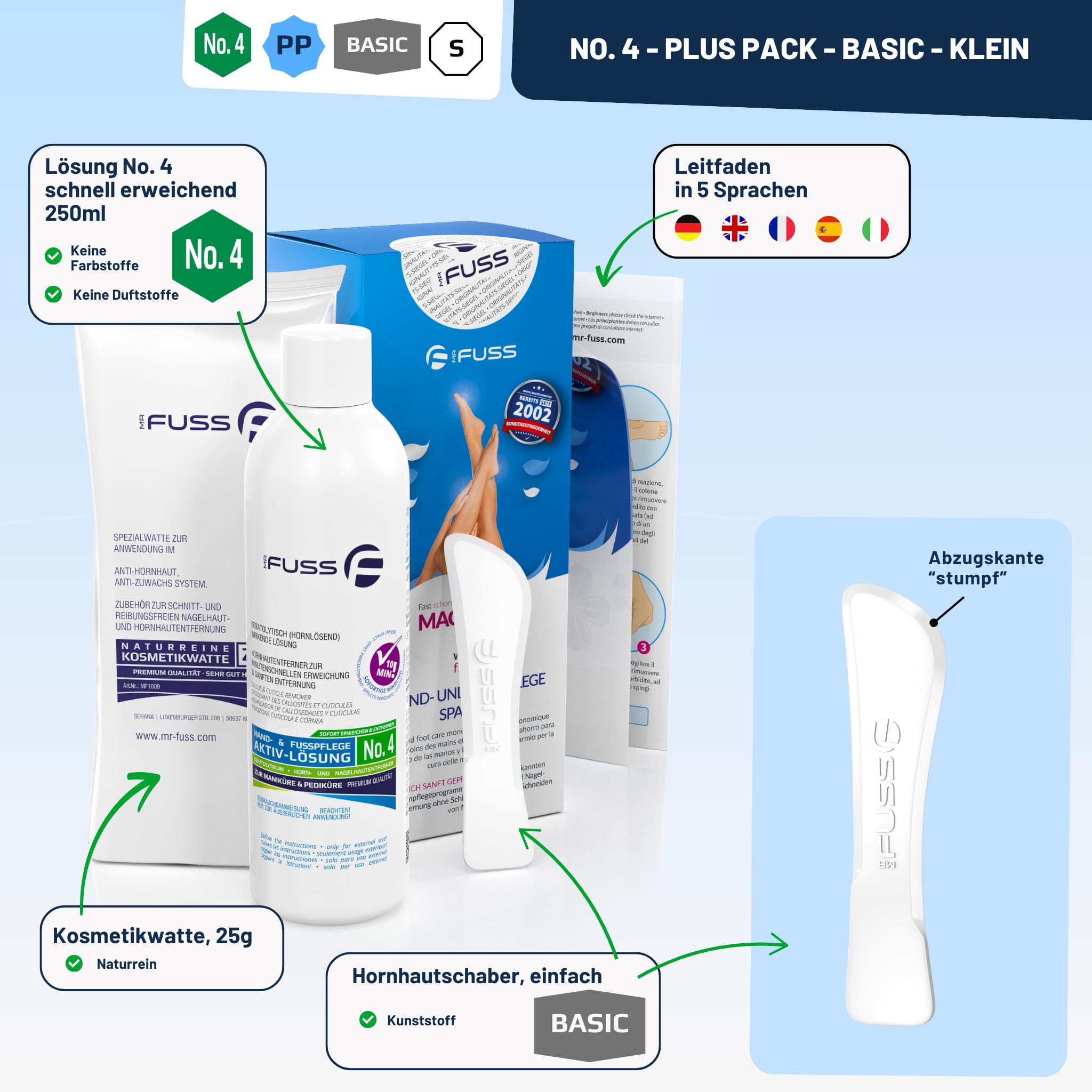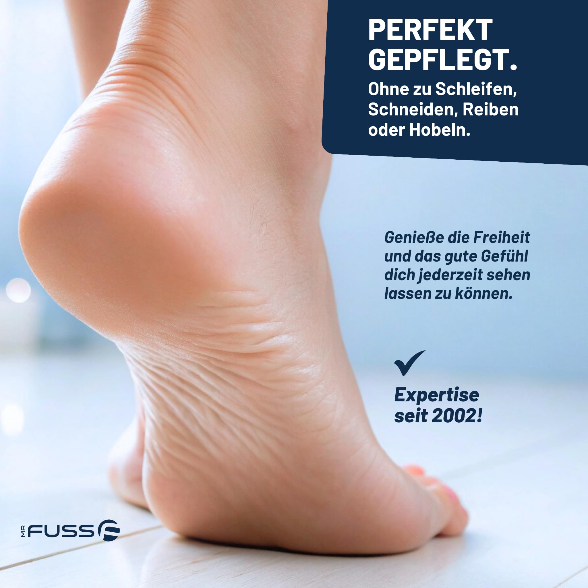 Mr. Fuss Hornhautentferner Lösung zur sanften Hornhautentfernung Schnell erweichende Lotion 250ml No. 4 im Plus Pack. Fusspflege Pediküre Set ohne Schleifen mit Sofort-Effekt.