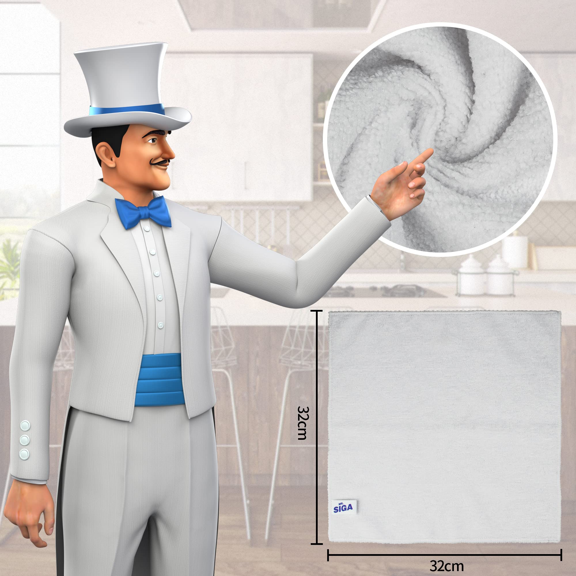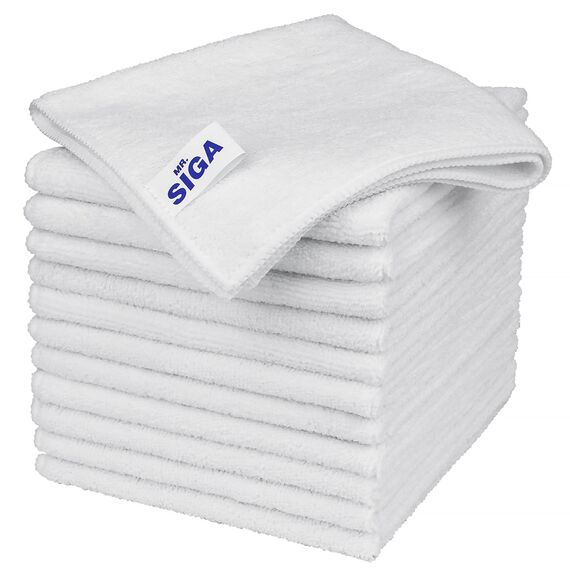 MR.SIGA Mikrofaser Reinigungstuch, Allzweck Mikrofasertücher, streifenfreie Putztücher, 12 Stücke, Weiss, Grösse 32 x 32 cm