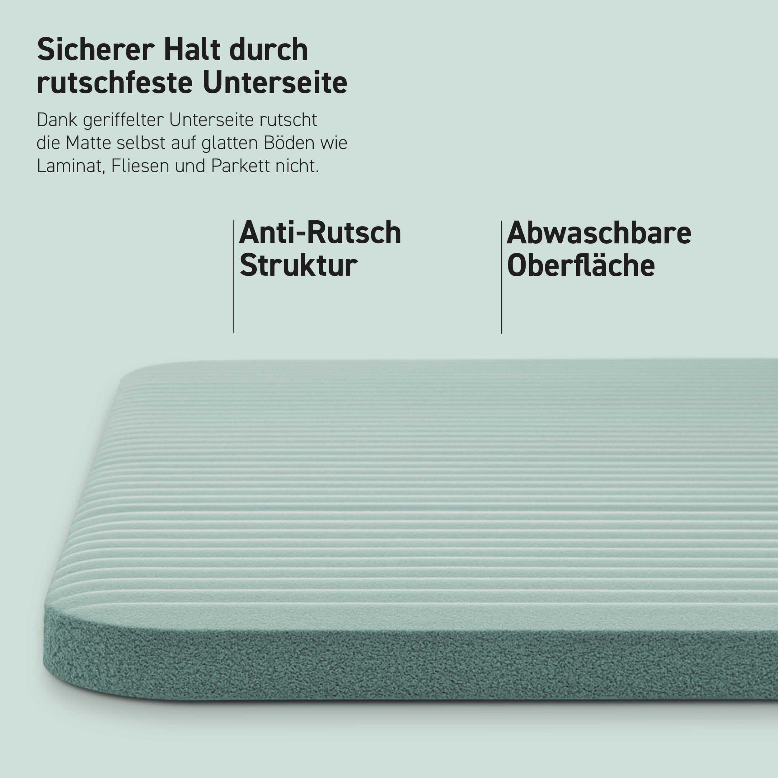 MSPORTS Gymnastikmatte Premium inkl. Tragegurt + Übungsposter + Workout App I Hautfreundliche Fitnessmatte 190 x 60 x 1,5 cm - Steingrau - Phthalatfreie Yogamatte
