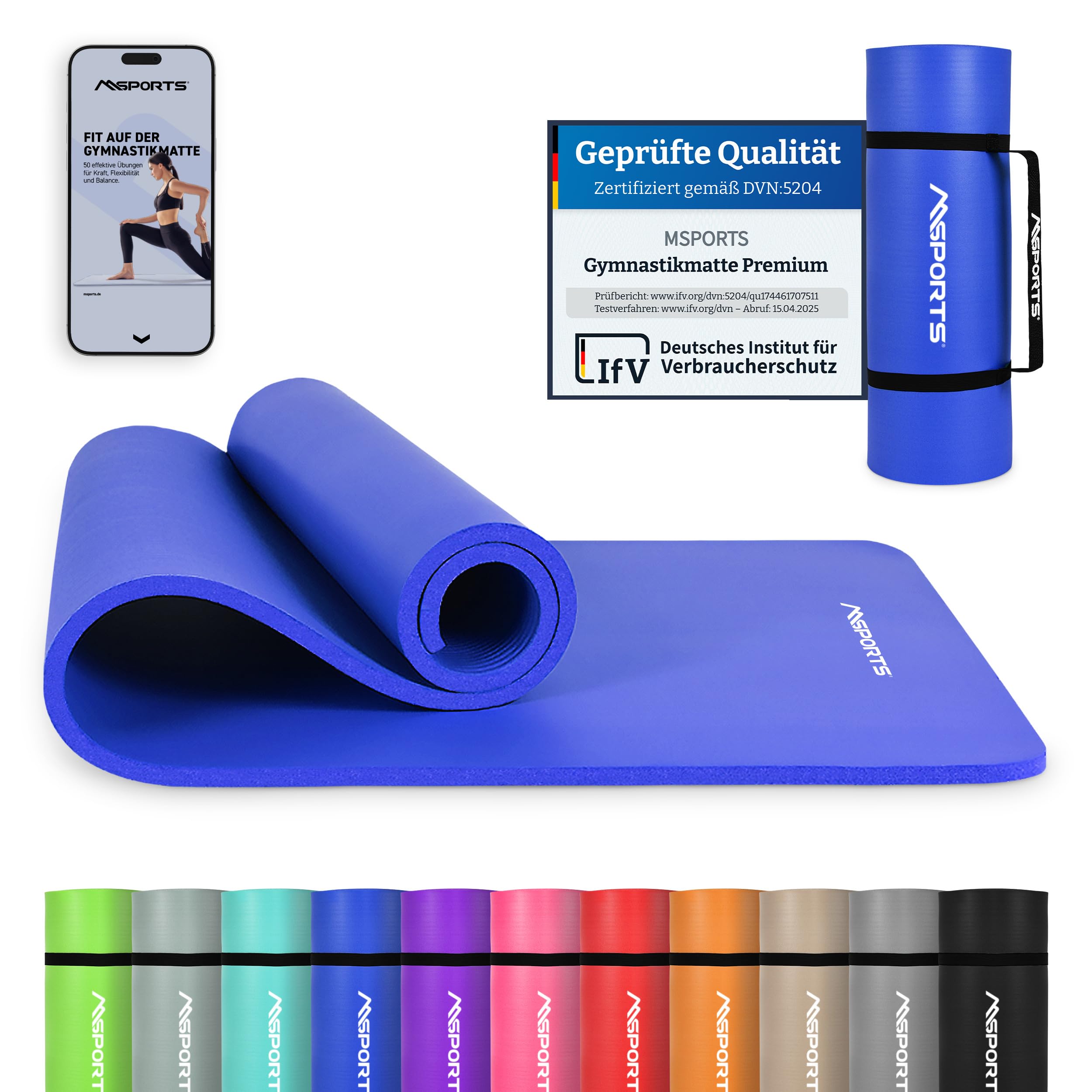 MSPORTS Gymnastikmatte Premium I Yoga Matte rutschfest und extra dick - inkl. Tragegurt + Übungsposter + Workout App I Hautfreundliche Sportmatte - 190x60x1,5 cm - Königsblau - Fitnessmatte, Yogamatte