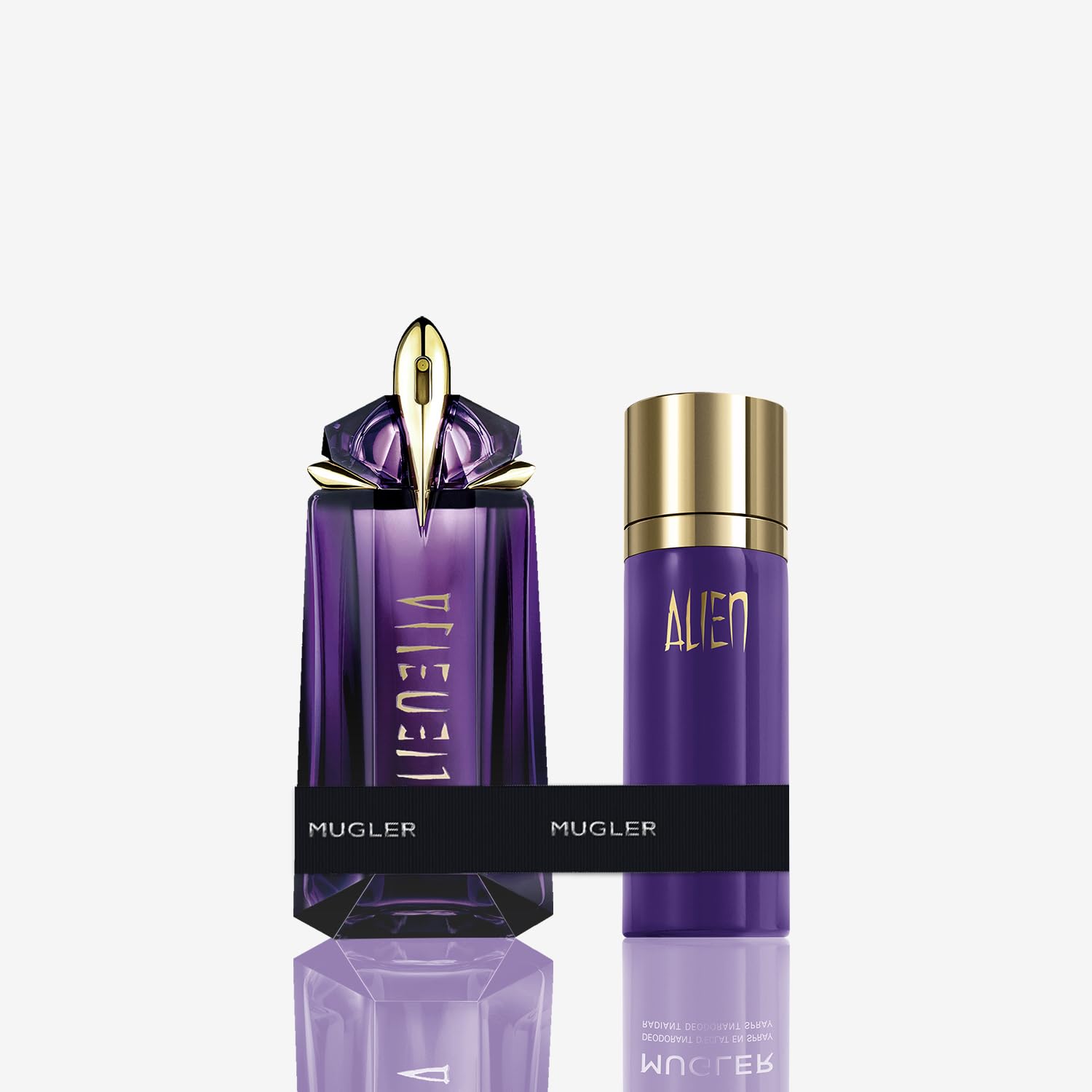 MUGLER Alien Eau de Parfum, Damen-Parfum, Amberartig, holzig und blumig, Außergewöhnlicher Duft, Nachfüllbar, 90 ml + MUGLER Alien Parfümierendes Deo-Spray, 100 ml