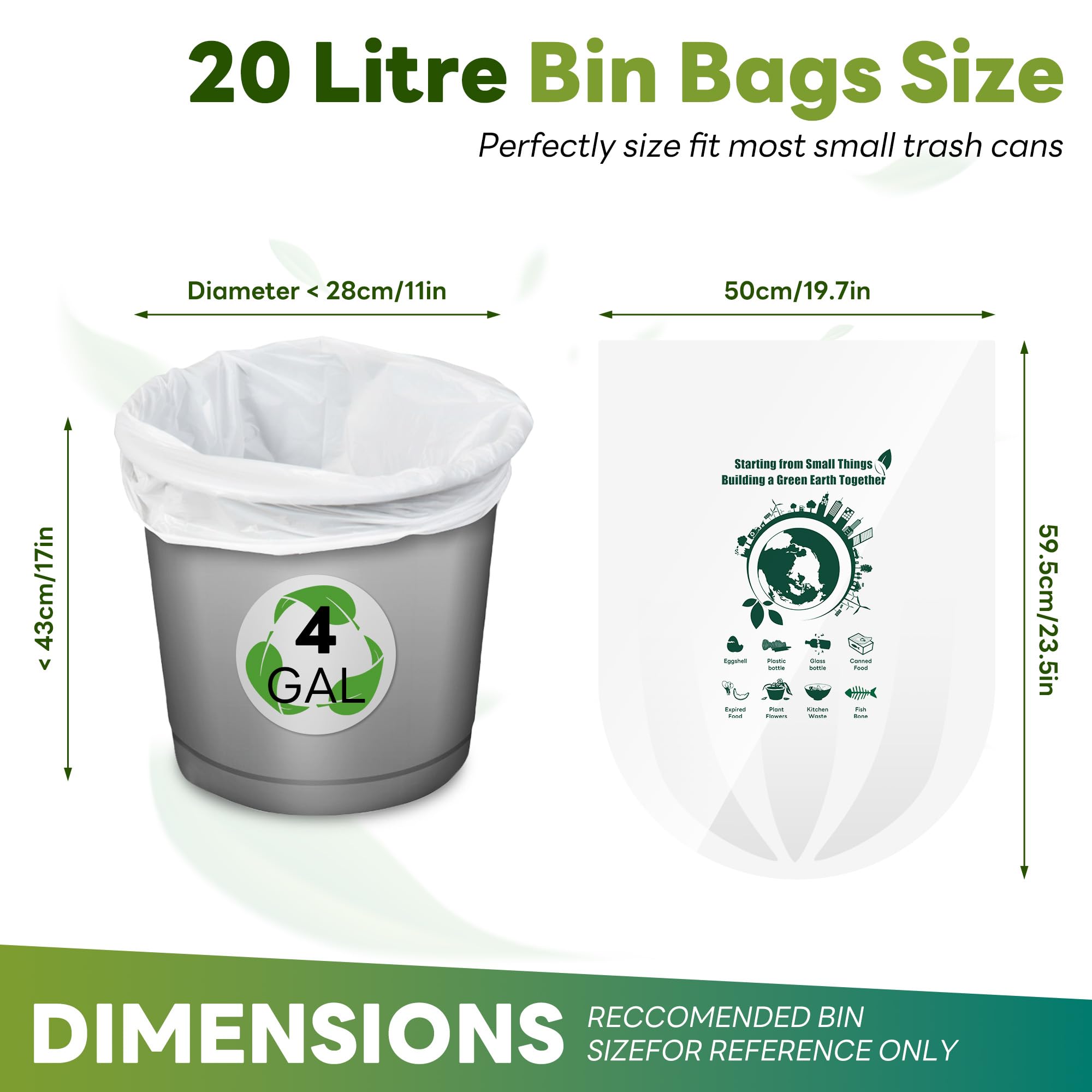 • 【Langlebige Recycelbare 20L Müllsäcke】Wir fördern grüne kleine küchentaschen. diese müllsäcke sind geschmacksneutral, ungiftig und rein.