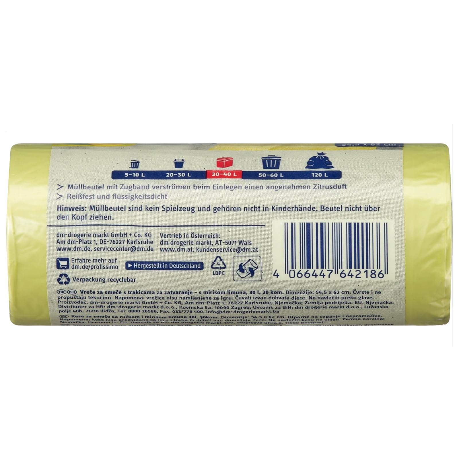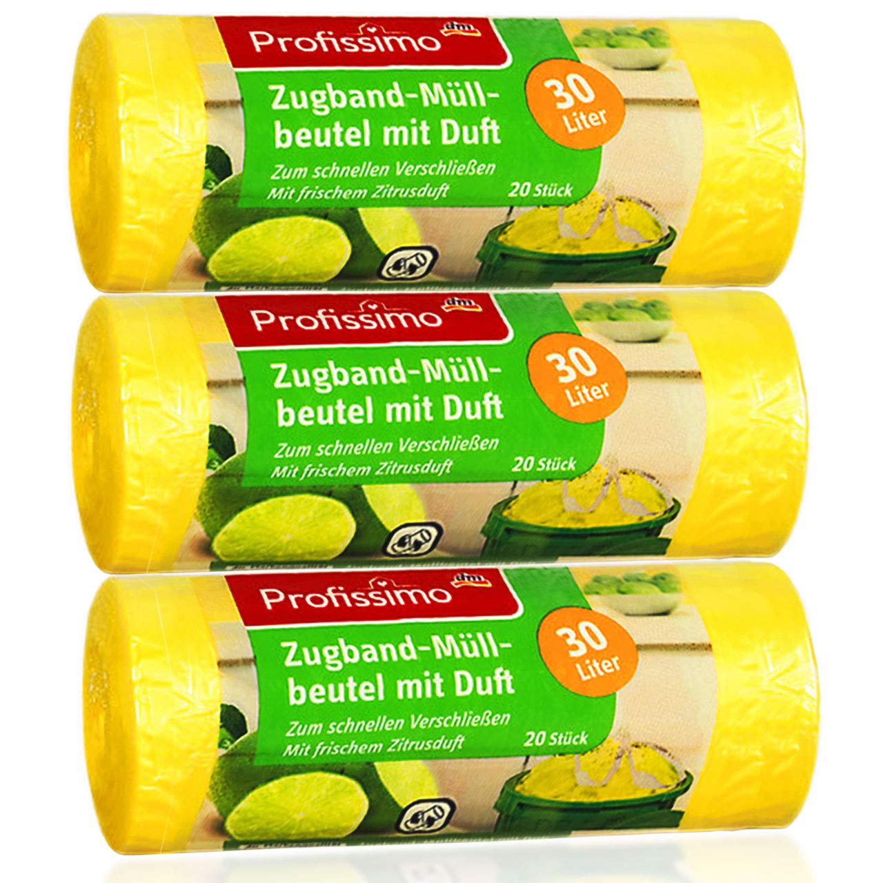 Müllbeutel mit frischem Zitrusduft - 30 Liter (60 Stück) - 3er Pack (3 x 20 Stück) - Ideal für Büro, Haushalt und Bad